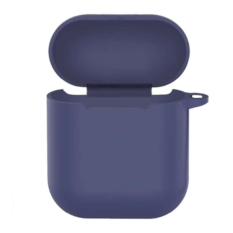 Силиконовый футляр New с карабином для наушников Airpods 1/2 (Темно-синий / Midnight blue)