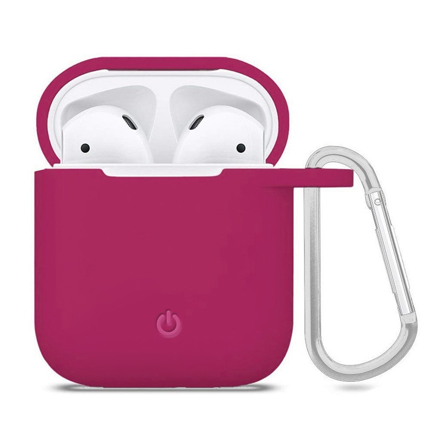 Силиконовый футляр с карабином для наушников AirPods (Красный / Rose Red)