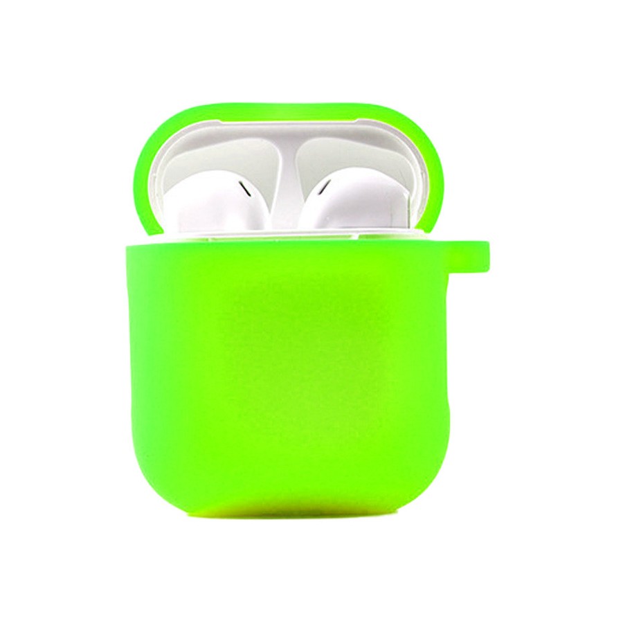 Силіконовий футляр з мікрофіброю для навушників Airpods 1/2 Салатовий / Neon green