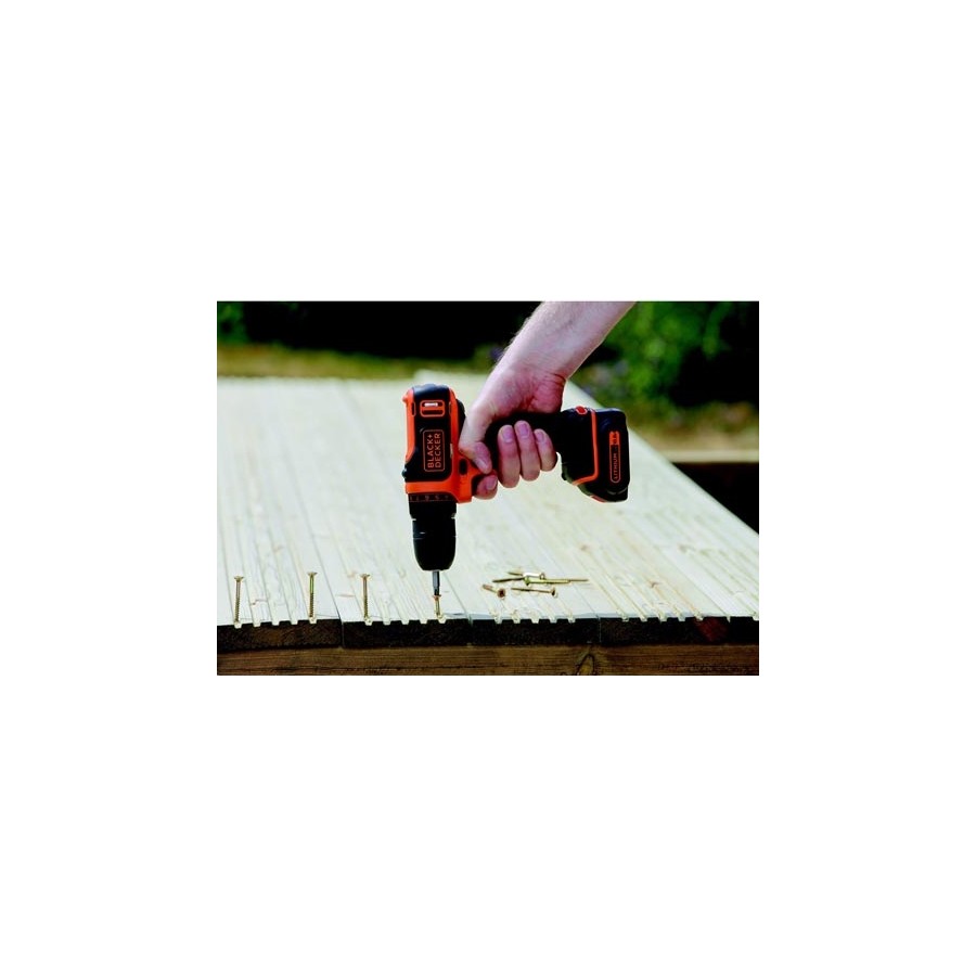 Black&Decker BDCDD12 - потужна і компактна акумуляторна дрель-шурупокрут з акумулятором на 10.8 В. Володіє оновленим ергономічним дизайном і повністю вирішить завдання, що виникають у будь-якого «домашнього» майстра. Також слід зазначити привабливе співвідношення ціни / продуктивності / якості. Модель оснащена швидкозатискним патроном, що зробить заміну аксесуарів легкою та швидкою.