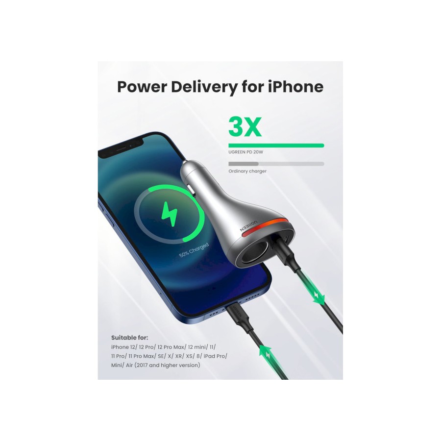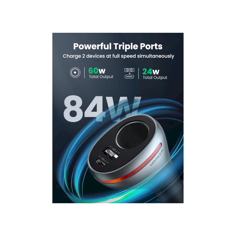 Швидкий автомобільний зарядний пристрій від відомого бренду Ugreen - аксесуар, який варто мати в автомобілі. Він оснащений трьома роз'ємами: USB та USB-C, а також роз'ємом для прикурювача загальною вихідною потужністю 84 Вт, підтримує протоколи швидкого заряджання PD та QC 3.0. Завдяки цьому ви зможете заряджати підключені до них пристрої до 2,5 разів швидше, ніж при використанні стандартного зарядного пристрою.