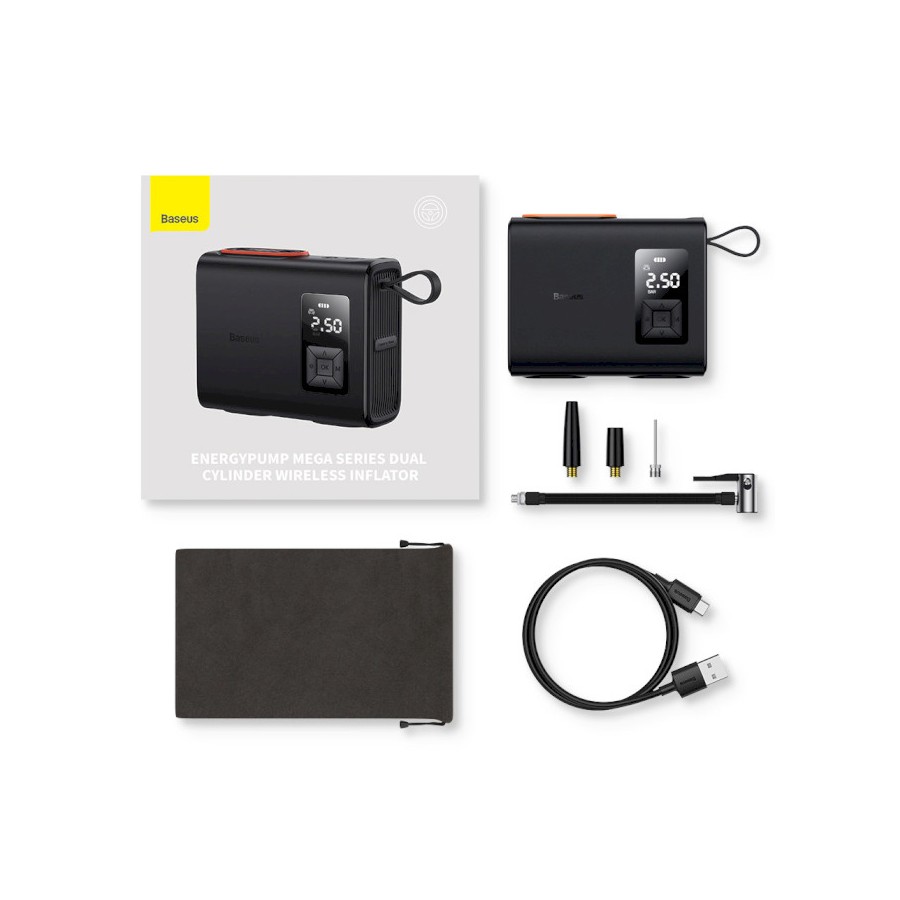 Baseus Mega EnergyPump Series Dual Cylinder Wireless Inflator — це простий у використанні, швидкий і зручний бездротовий двоциліндровий автомобільний насос з литого сплаву. Невелика вага й ергономічний дизайн дозволяють зберігати його у багажнику.