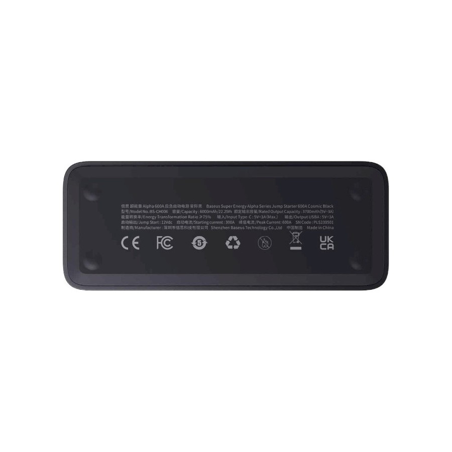 Пуско-зарядний пристрій Baseus Super Energy Alpha Series Jump starter 600A оснащений вхідним роз’ємом USB Type-C (5V/3A) та вихідним USB-А (5V/3A). Вихідної сили струму достатньо для підзарядки таких пристроїв, як повербанк, телефон, навушники, селфі-палки, планшет.