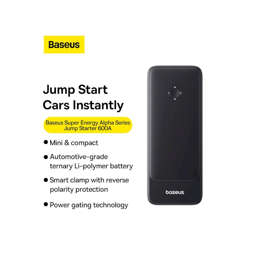 Пуско-зарядний пристрій Baseus Super Energy Alpha Series Jump starter 600A (C00259200121-00) не тільки допоможе легко та безпечно завести автомобіль, але й має компактні розміри, завдяки чому прилад можна завжди тримати під рукою. Прилад стане для вас чудовим помічником, коли потужності акумулятора не вистачатиме для запуску двигуна, а також допоможе реанімувати батарею телефону або планшета, що сів на ходу.