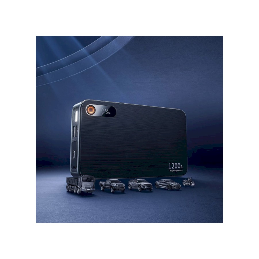 е дозволяйте розрядженому акумулятору в автомобілі зруйнувати ваші плани. Стартер Baseus дозволить вам швидко завести автомобіль – більше не потрібно просити про допомогу сусідів чи дзвонити друзям! Пристрій працюватиме навіть за мінусової температури до -20°C і дуже просто у використанні. Підходить для запуску різних типів автомобілів як з бензиновими двигунами 12В до 6.0 літрів, так і з дизельними двигунами 12В до 2.5 літрів. Він оснащений 3 акумуляторами, а його піковий струм 1200 А.