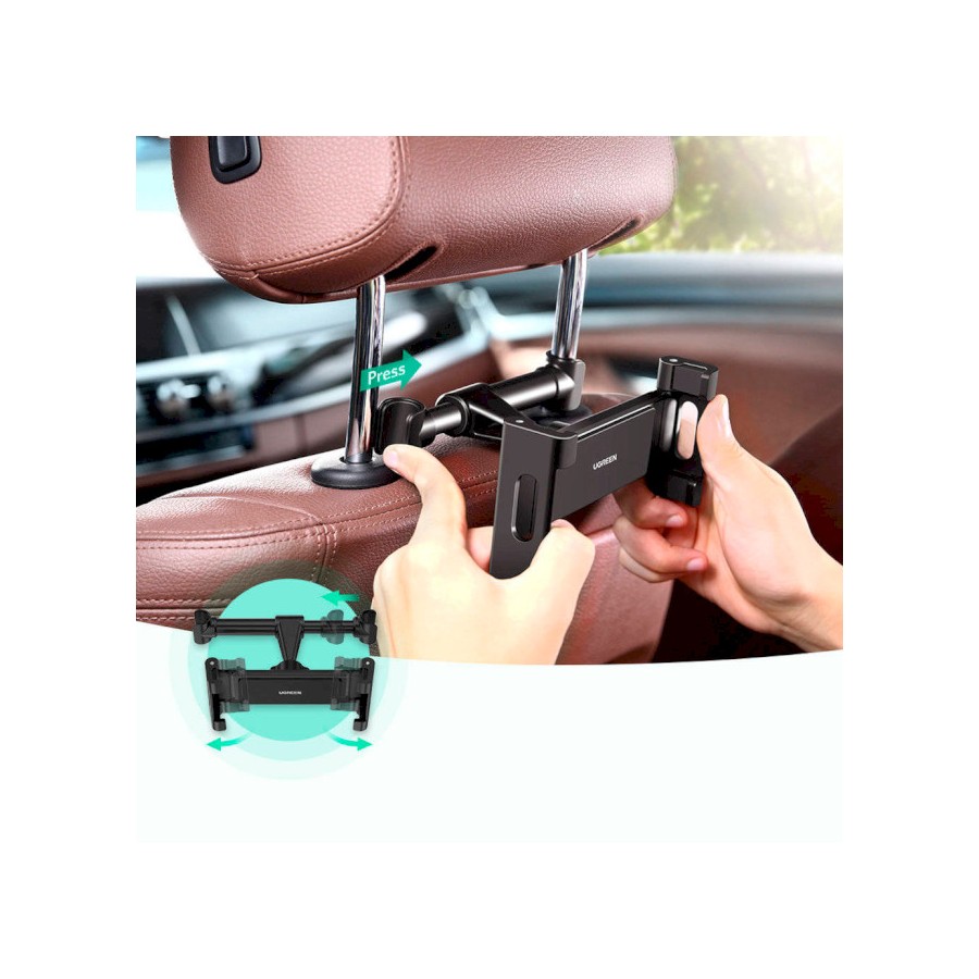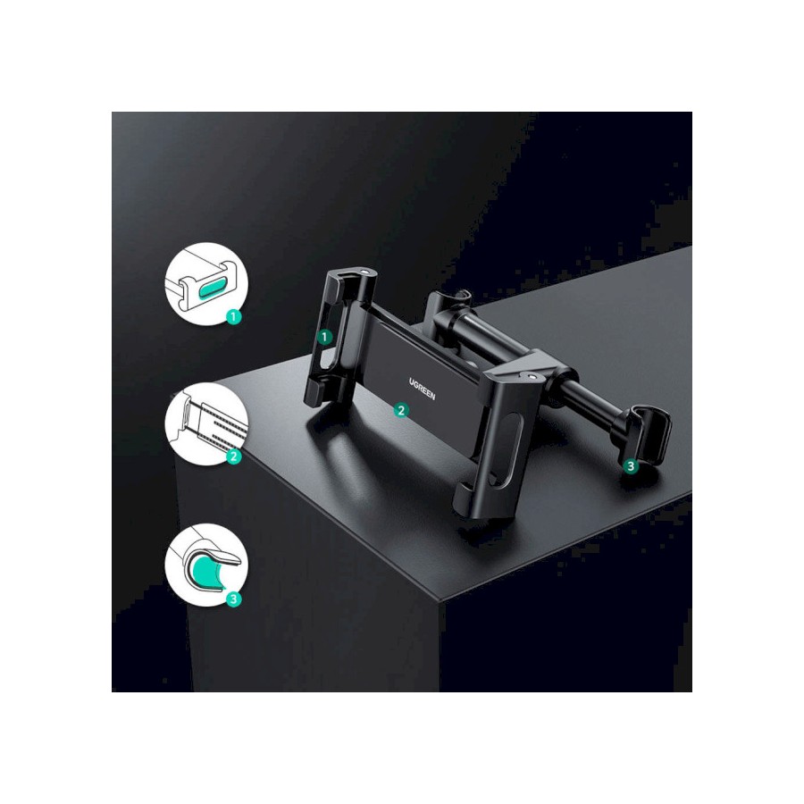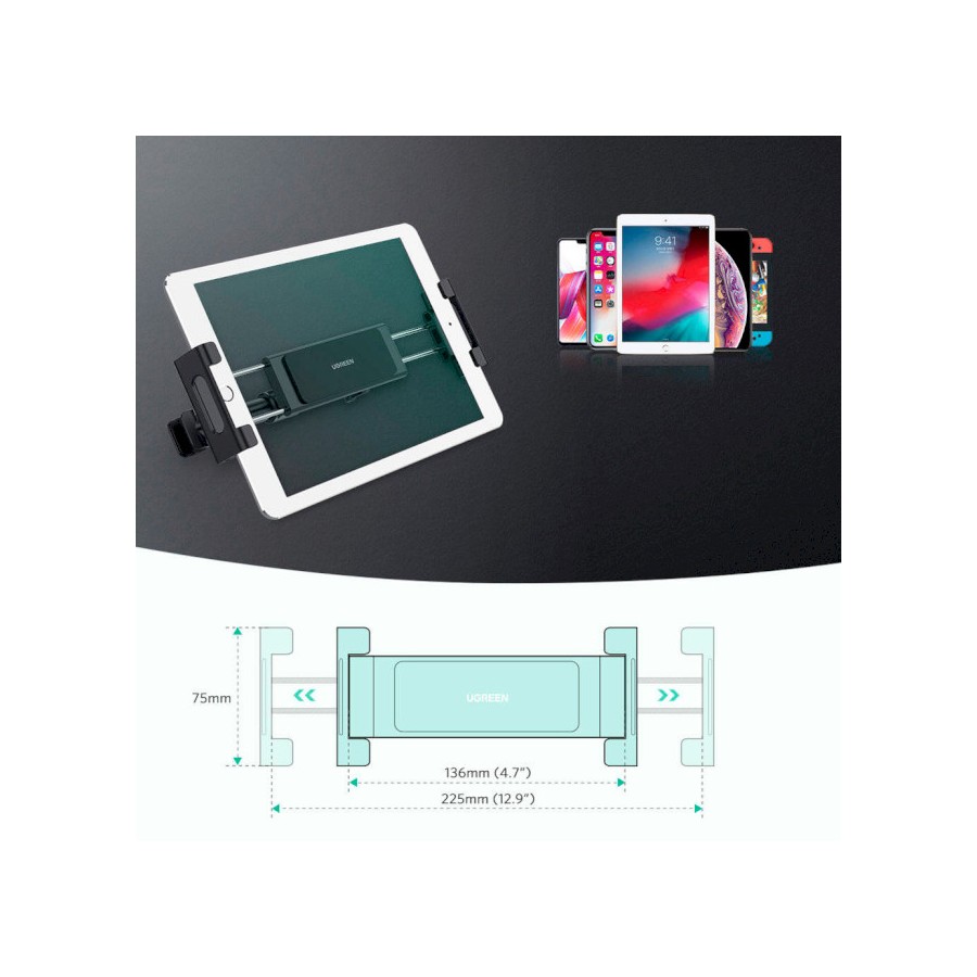 Автомобільний тримач для UGREEN планшета на задньому сидінні використовується для кріплення планшетів і смартфонів, таких як iPad Pro, iPad Mini, iPad Air, Switch, на спинці сидіння водія або пасажирського сидіння автомобіля. Тримач для планшета в підголовнику дозволяє використовувати телефон або планшет як розважальний центр без допомоги рук. Ідеально підходить для обміну музикою, фільмами чи іграми з сім'єю та друзями. Кріплення для планшета – ідеальний спосіб додати більше задоволення у довгу подорож та тримати дітей у спокійному стані. Встановлюється за лічені секунди