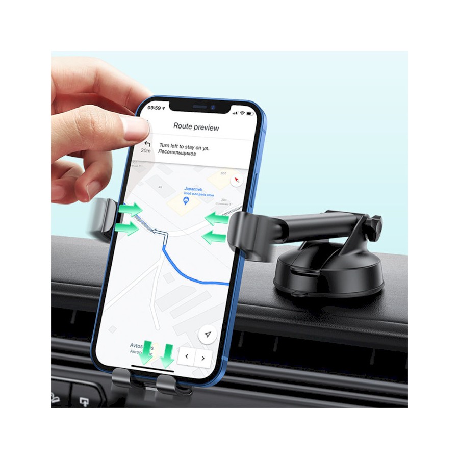 Завдяки гравітаційній конструкції, цей автомобільний тримач для телефону може просто зафіксувати ваш телефон на місці. Керування однією рукою для надійного розміщення телефону у тримачі.