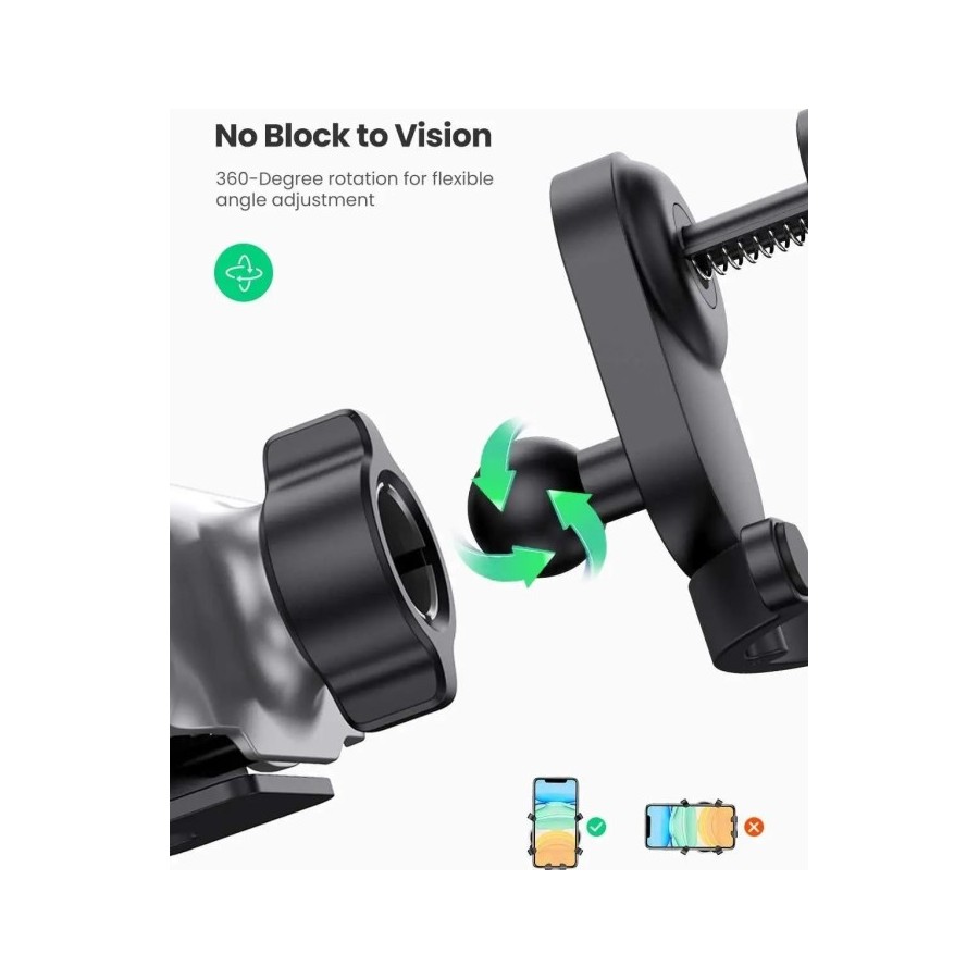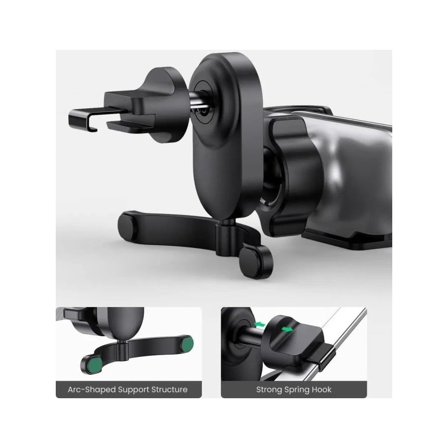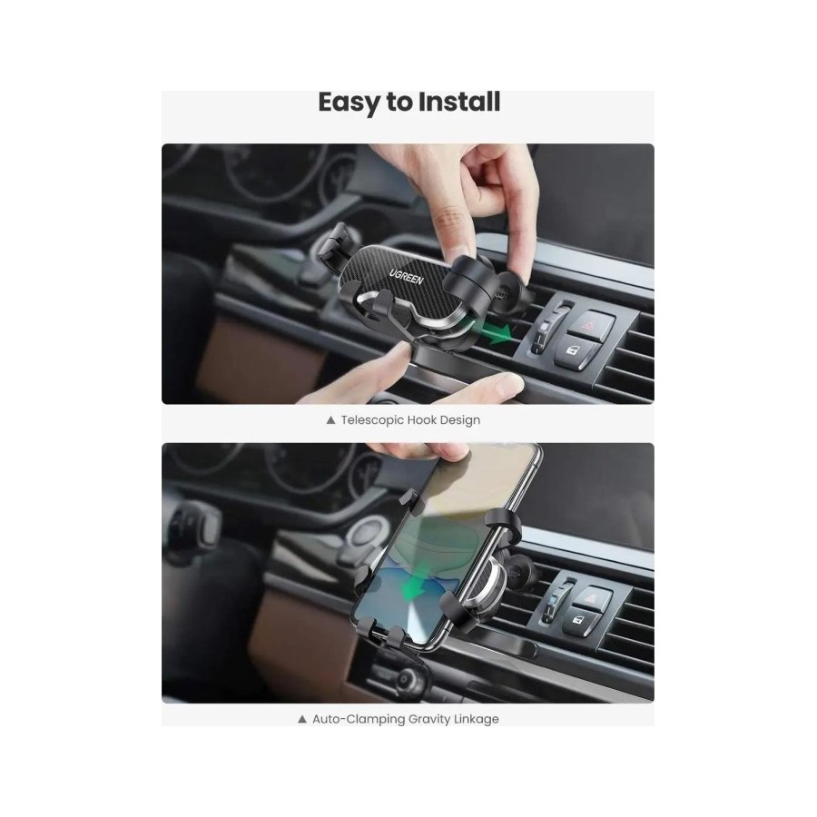 Автомобільний тримач для UGREN з автоматичним затиском кріпить ваш мобільний телефон до вентиляційних отворів автомобіля для навігації без допомоги рук, запобігаючи порушення правил дорожнього руху і підвищення безпеки водіння. Це вентиляційне обладнання утримує ваш телефон поруч з вами, забезпечує легкий доступ і зручної навігації, щоб ваші руки залишалися на керуванні і стежили за дорожніми умовами.
