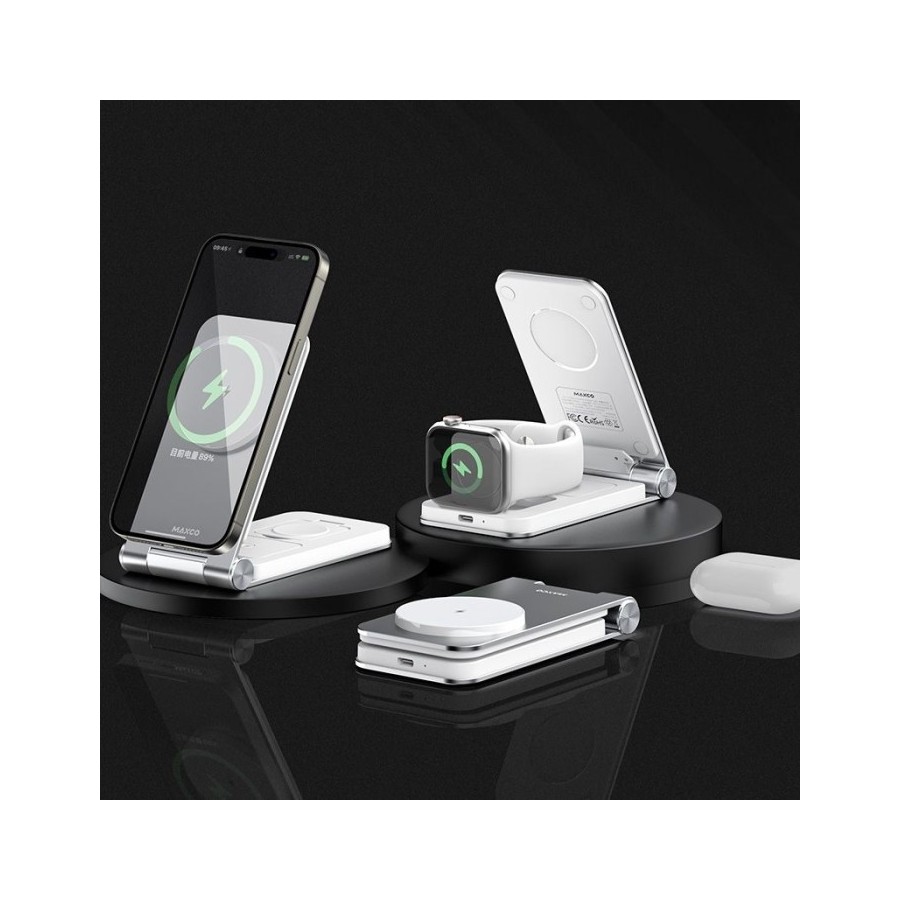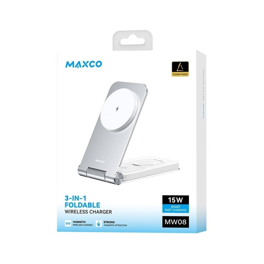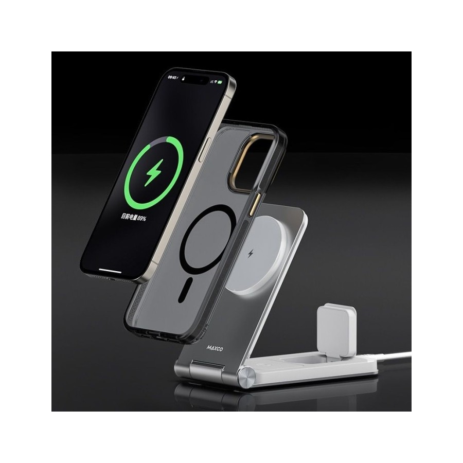 Купити бездротову зарядку MAXCO 3in1 15W Folding Wireless Charger (MW08) сір. Ви можете, оформивши замовлення у нас на сайті.