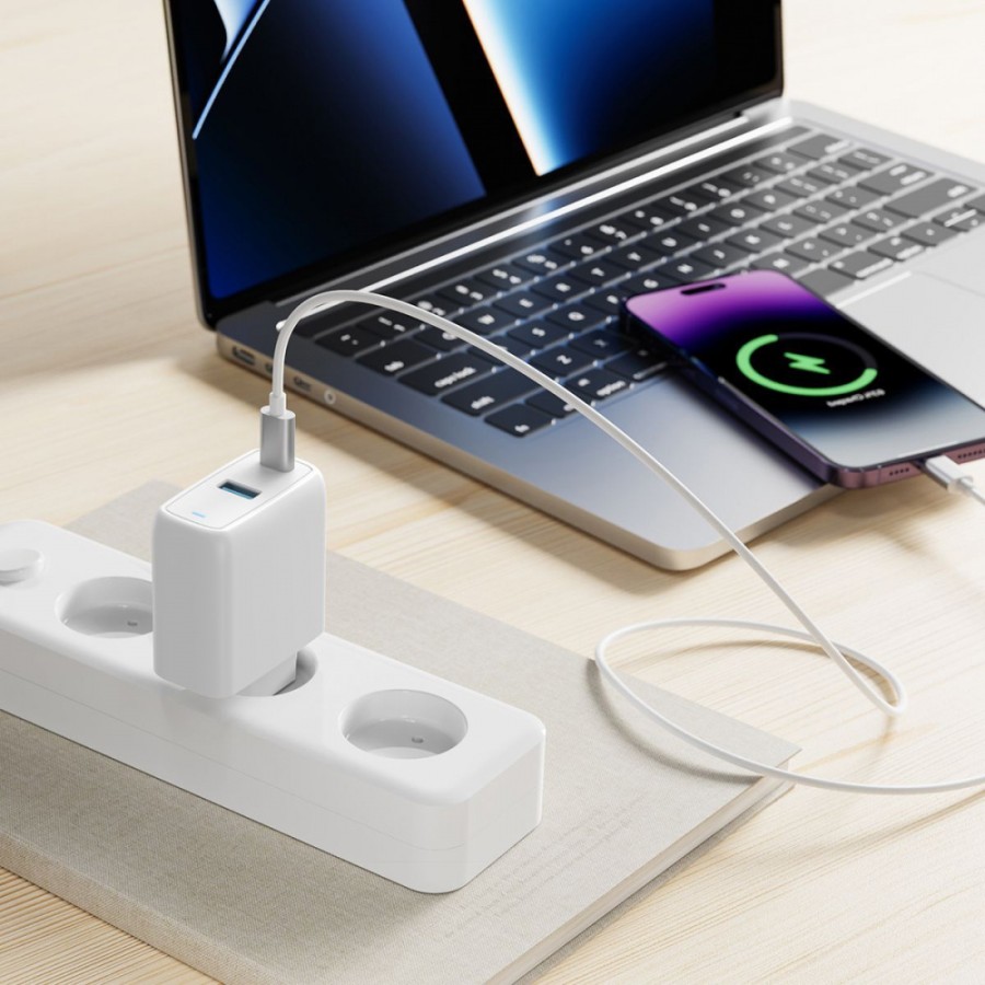 мережева зарядка XO CE16 - 45W PD USB-C & 22.5W QC USB-A (Білий)