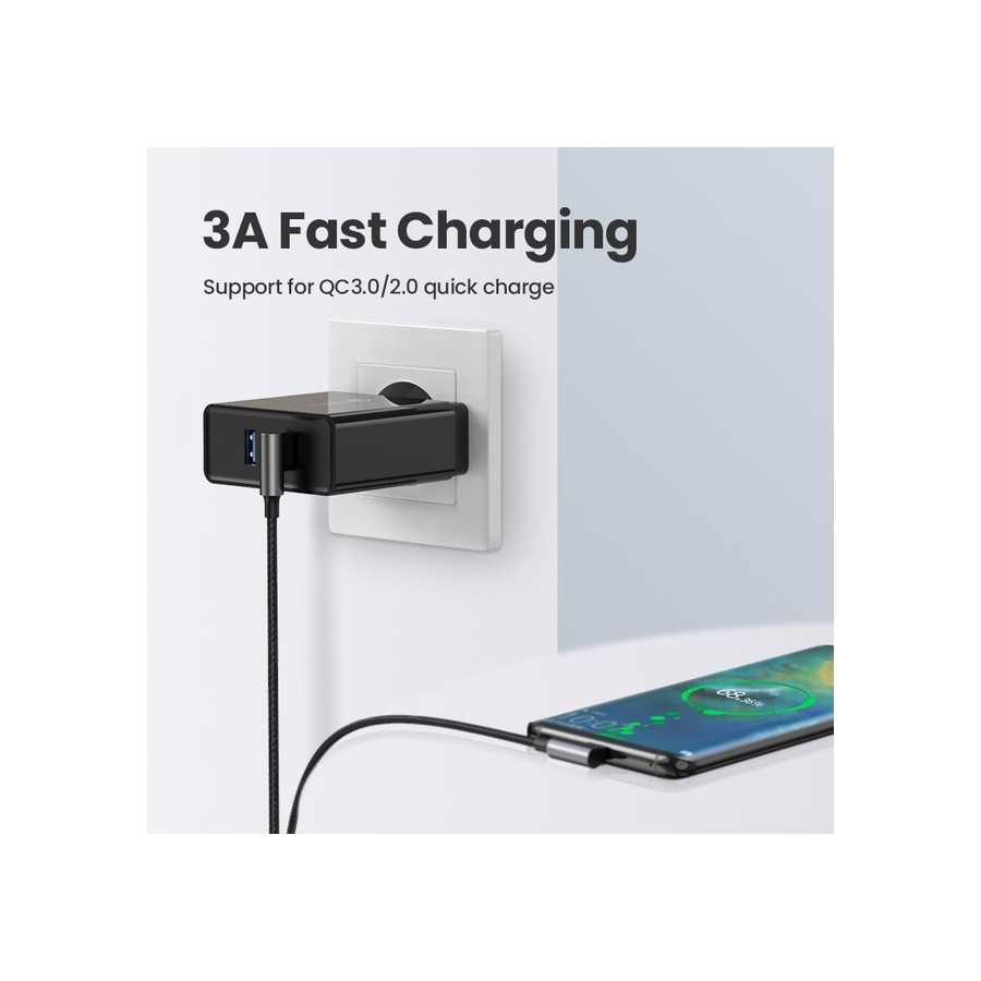 UGREEN US176 Angled USB 2.0 To Angled USB Type-C Cable Nickel Plating Aluminum Shell 3A 1m