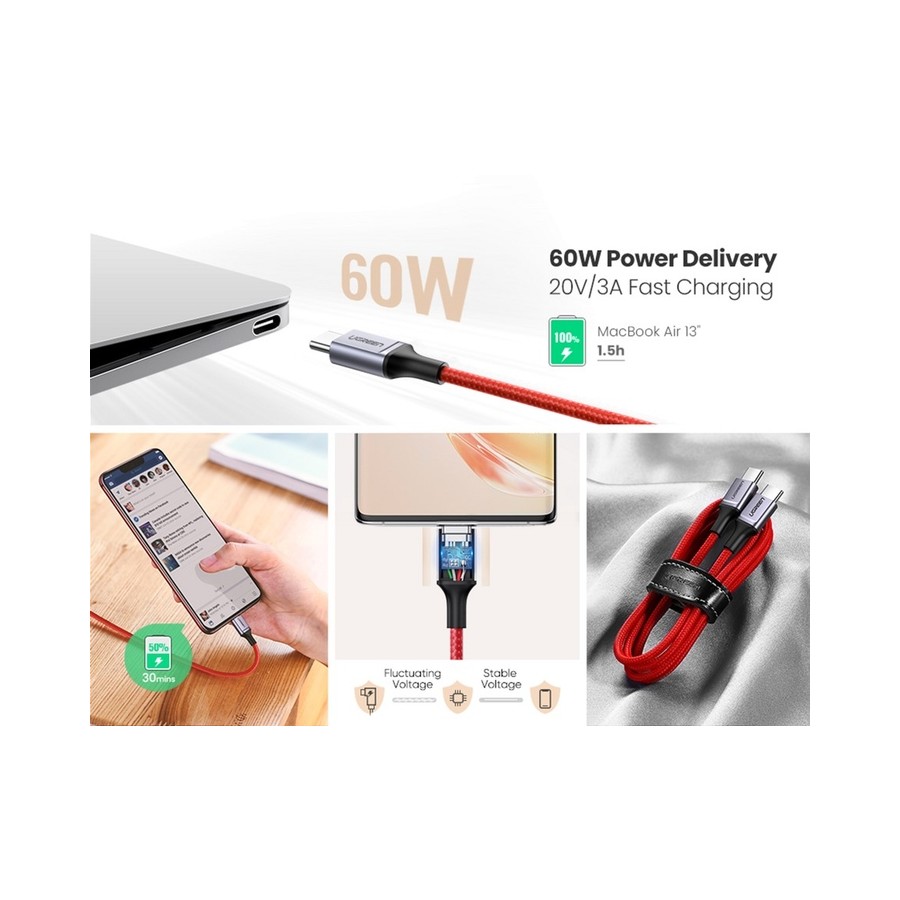 Кабель UGREEN US294 USB 2.0 Type C Male To Male Cable Aluminum Nickel Plating 1m Red (60186)