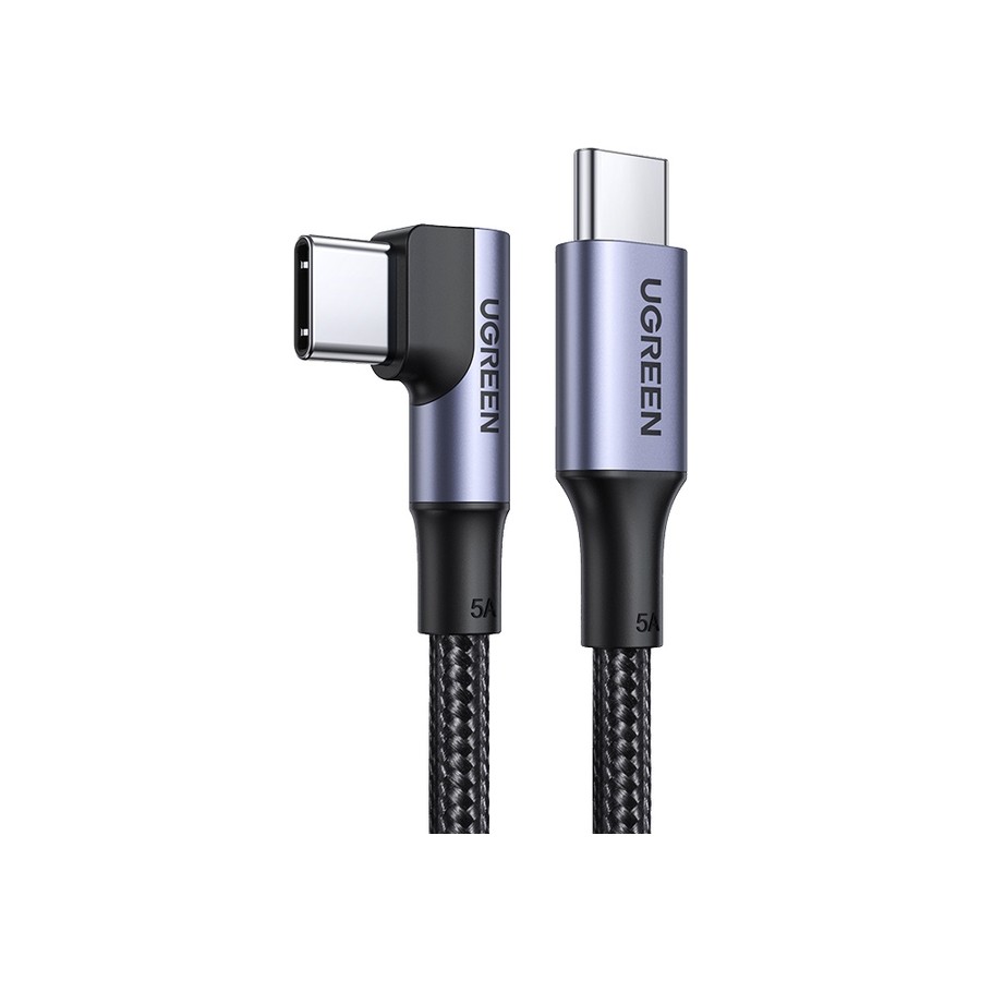 Кабель UGREEN US334 USB-C 2.0 To Angled USB-C M/M Cable Aluminium Shell With Braided 1m Black (70643)