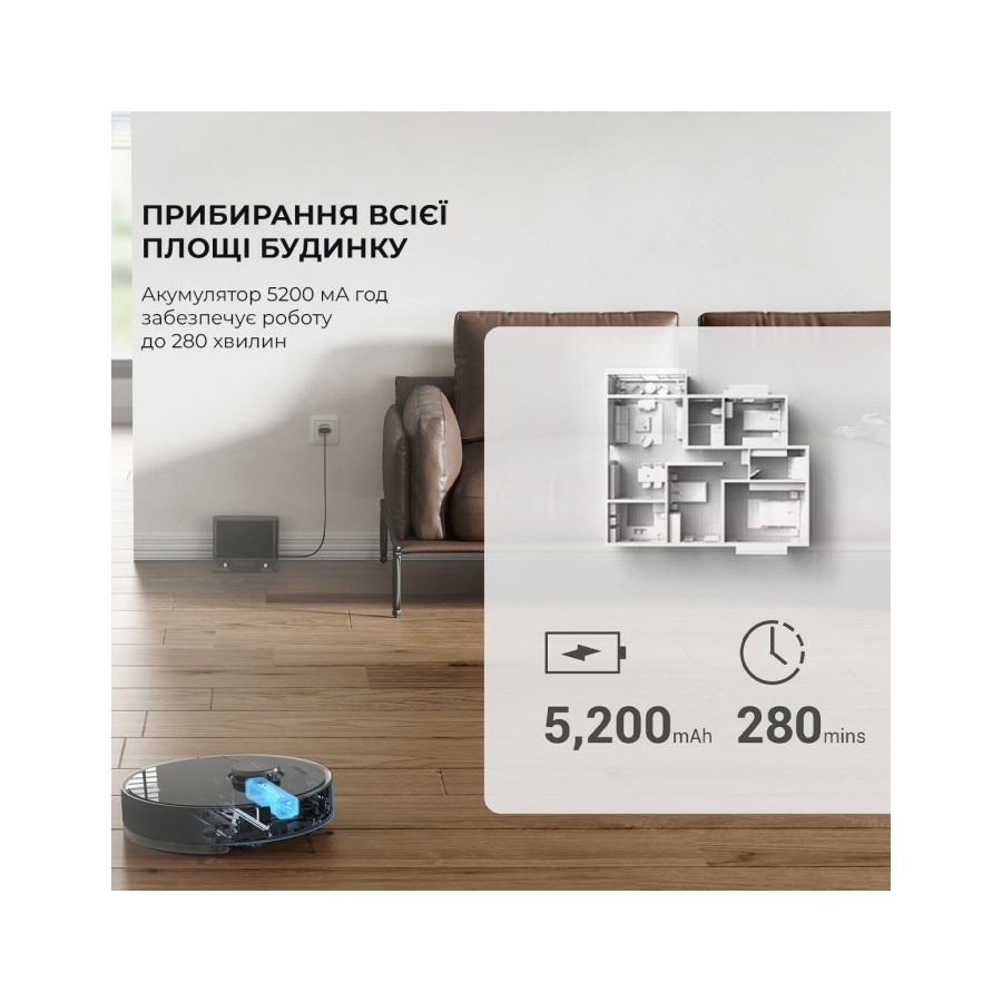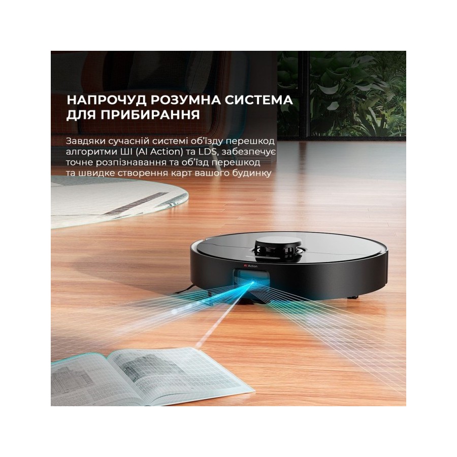 Внутрішній блок цифрового управління застосовує напрацювання ІІ для ефективного пересування по приміщенню та ретельного прибирання. Вбудовані датчики відстані, висоти та сенсор LDS дозволяють роботу безпечно пересуватися по вашому будинку та проводити щоденне прибирання в автоматичному режимі. Робот здатний розпізнати предмети та меблі, що знаходяться на його шляху і об'їхати такі перешкоди. Також бот може визначати своє місце розташування в кімнатах і забиратися тільки в призначених зонах для прибирання.