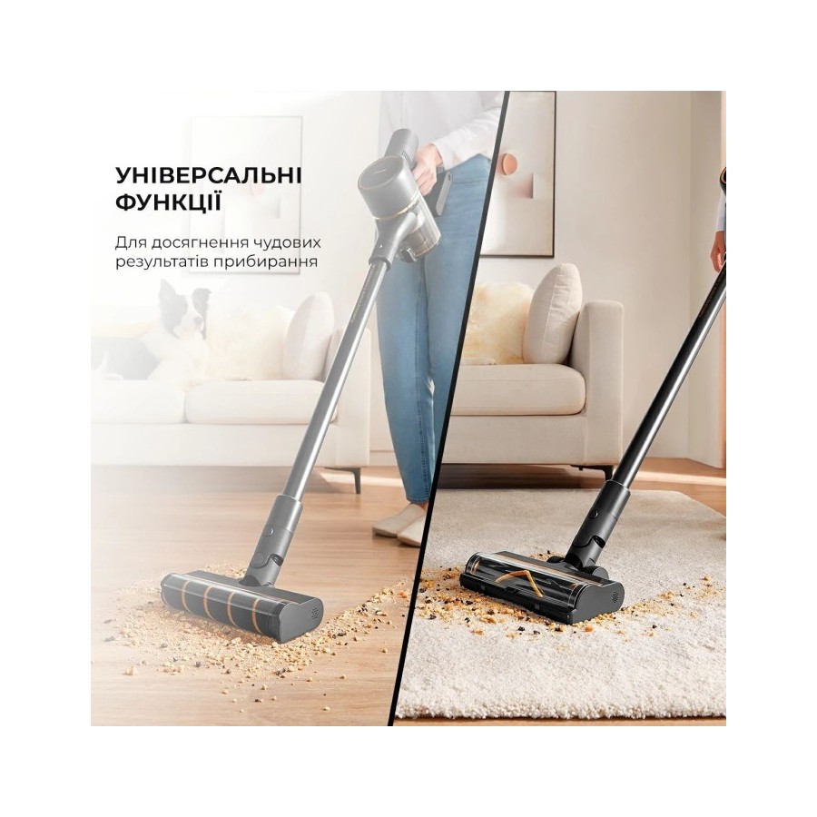 Бездротовий пилосос Dreame R10 PRO ефективно очищає не тільки підлогу, але й м'які меблі, плінтуси та підстельовий простір, клавіатуру ноутбука чи комп'ютера. Також разом із пилососом ви можете підтримувати чистоту в автосалоні. Якщо у вас вдома є домашні вихованці, пропонуємо використовувати спеціальну насадку. Вона прибирає шерсть і волосся, а також дрібні крихти. Моторизована насадка у свою чергу усуне складніші забруднення і активніше прибиратиме сміття.