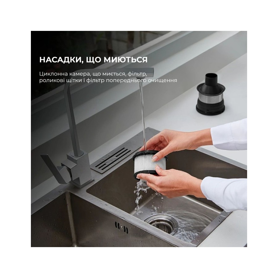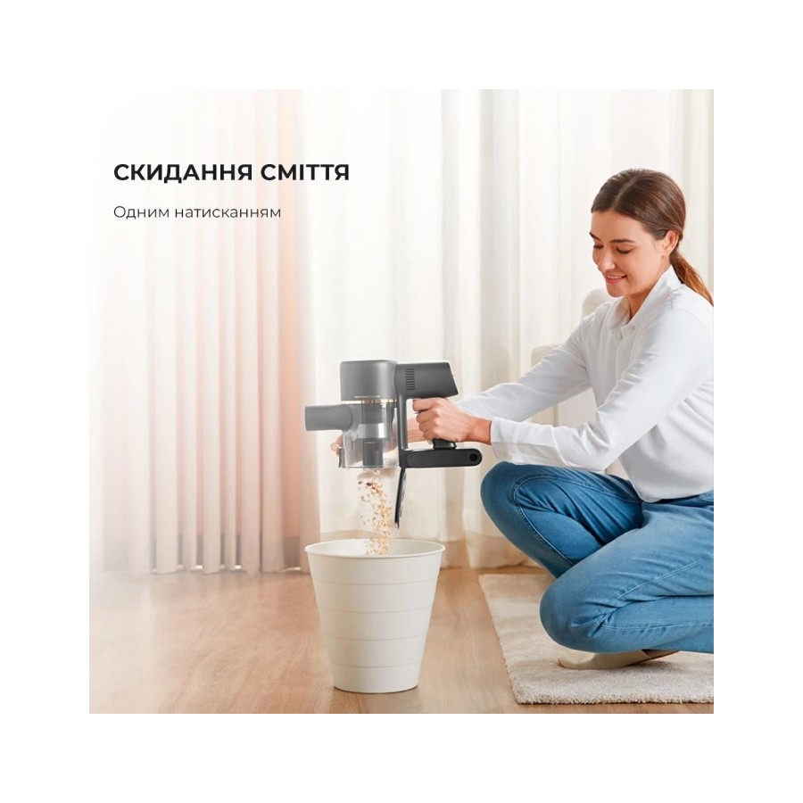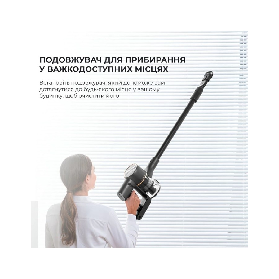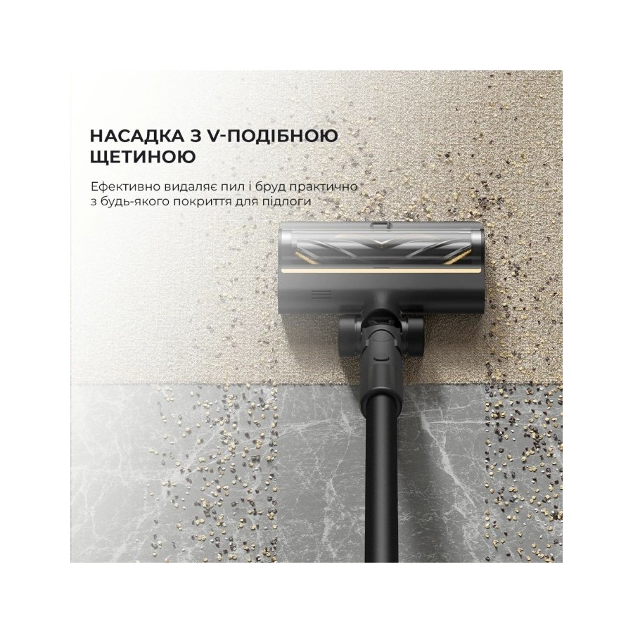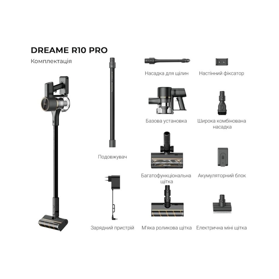 Dreame R10 PRO має стильний дизайн, тому точно впишеться у ваш інтер'єр. Невеликі розміри дозволяють легко прибирати у всьому будинку і навіть очищати простір під стелю. Широка ручка гарантує зручний хват при збиранні. За потреби можна змінювати насадки, вони змінюються за допомогою клацання.