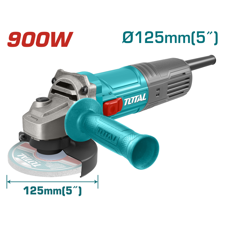 Кутова шліфмашина Total TG10912556 призначена для сухого різання різних будівельних матеріалів – металу,арматури, бетону, цегли, плитки, каменя, піно- та газоблока. Цей інструмент легко шліфує деревину та метал шліфувальними дисками. Регульований вручну кожух прикриває відрізний диск а також захищає від іскор, абразивного пилу та робочого сміття. Корпус із удароміцного пластику захищає внутрішні елементи від пошкоджень та подовжує термін використання інструментом. Вузький корпус КШМ зручно лежить у руці, це забезпечує надійний хват та контроль над болгаркою. Додаткова рукоятка може встановлюватись ліворуч або праворуч - підходить як правшам, так і шульгам. Модель Total TG10912556 має вхідну потужність 900 Вт, кількість обертів - 12000 об/хв і підтримує встановлення абразивних дисків діаметром 125х22.2 мм. У комплекті додаткова знімна рукоятка, захисний кожух, фланцевий ключ, коробка.