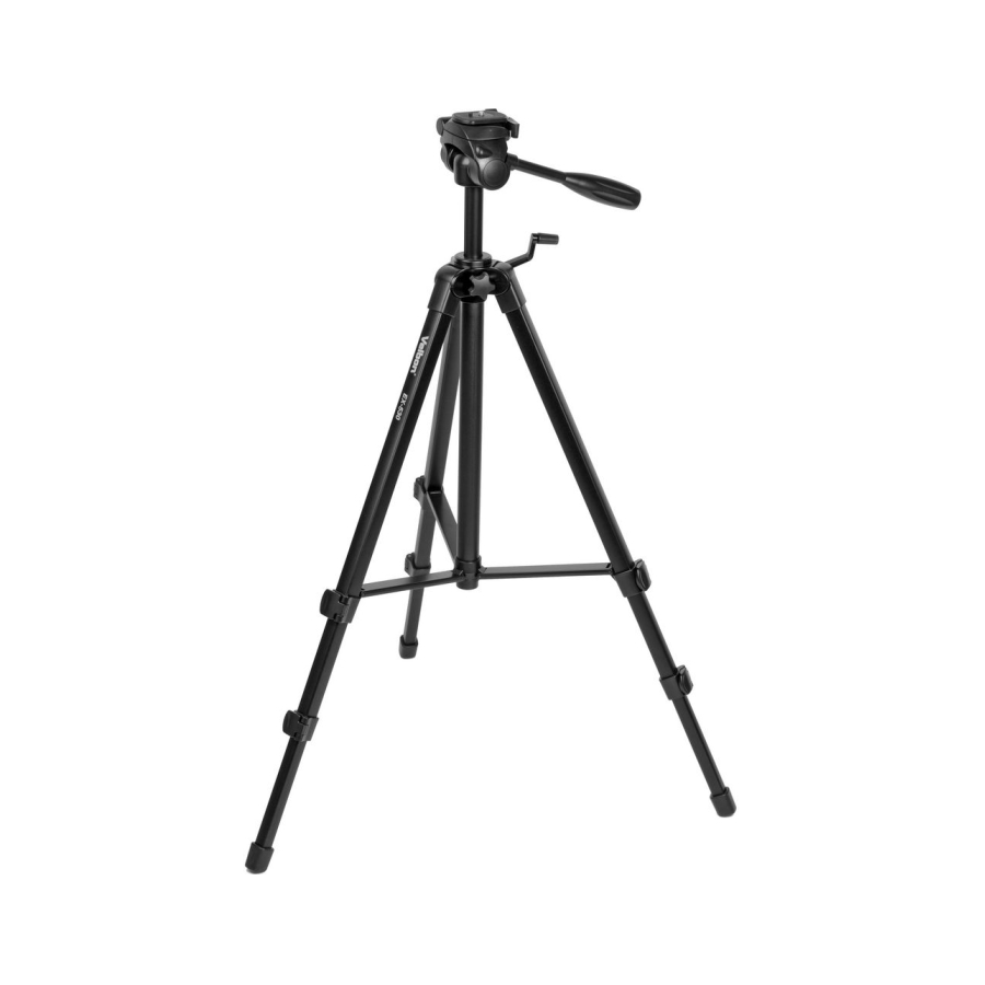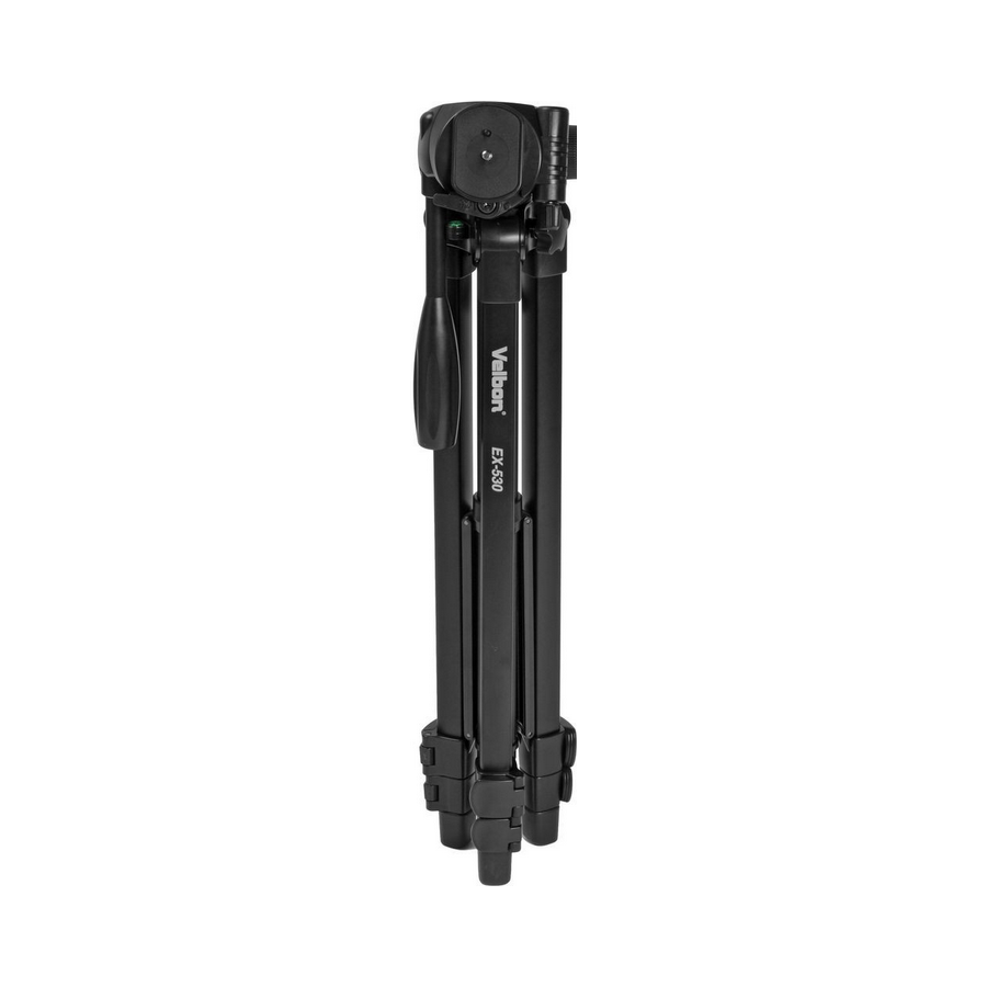 Velbon EX-530 є легким алюмінієвим штативом для початківців і просунутих користувачів, у комплекті з панорамною рідинною відеоголовкою зі швидкознімним майданчиком і кріпленнями PHD-46Q. Платформа камери обертається до 90 градусів праворуч, що дозволяє робити портретну зйомку. Максимальна робоча висота при повністю висунутій центральній колоні 156 см, мінімальна - 53.3 см. Трисекційна конструкція опорних колон штатива забезпечує максимальну жорсткість і стійкість, а нижні прогумовані частини колон забезпечують хорошу стійкість на будь-якій поверхні. EX-530 витримує максимальне навантаження 4 кг, діаметр секції верхньої колони 20 мм. У комплект входить кейс для перенесення.