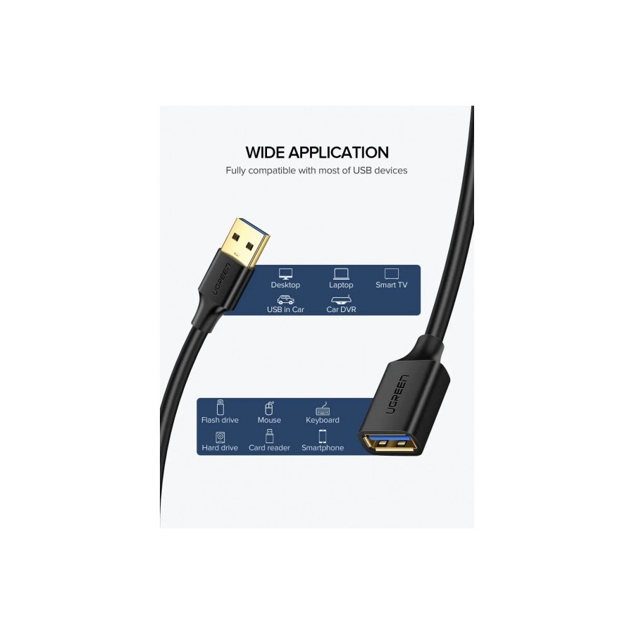 Кабель UGREEN US129 USB 3.0 Extension Male Cable 0.5m (30125) Black