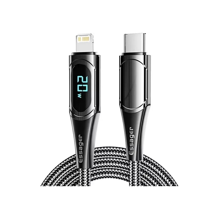 Кабель Essager LED Digital Display PD 20W Fast Charging Type C to Lightnining USB Cable 1m (EXCTL-YD01) Black
