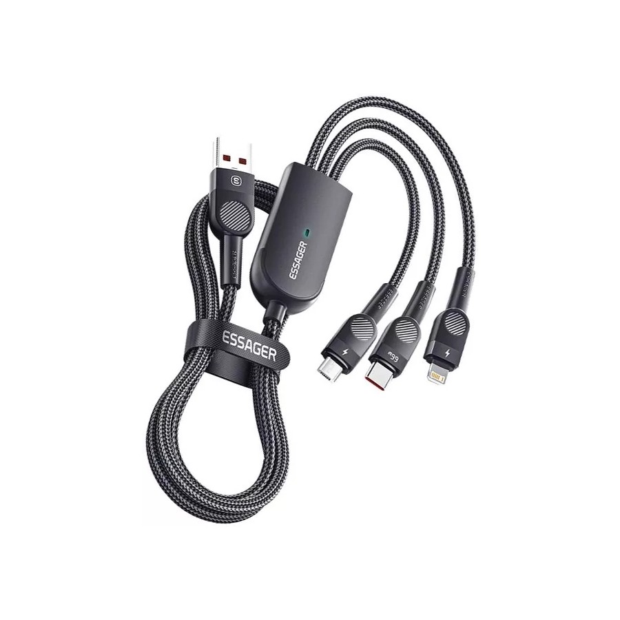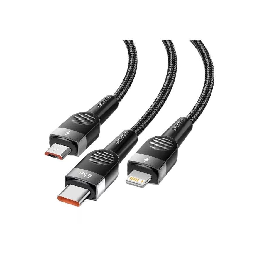 Essager Swift 3-in-1 USB Cable 66W Micro+ Type C + Lightning 1.2m