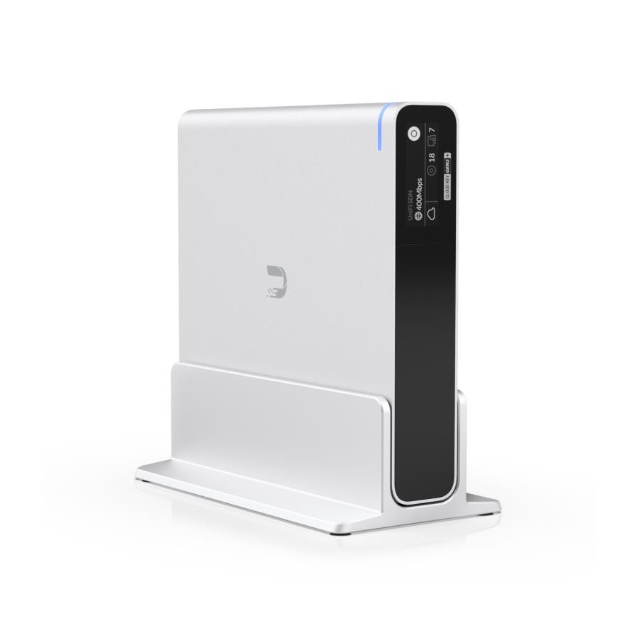 Зручна настільна підставка з алюмінію для встановлення контролера UniFi Cloud Key Gen2 Plus у вертикальному положенні.