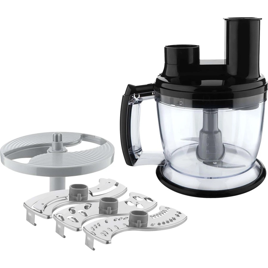 • Многофункциональная измельчающая ёмкость с объёмом 1 250 мл с 3 тёрками для резки, измельчения и шинковки