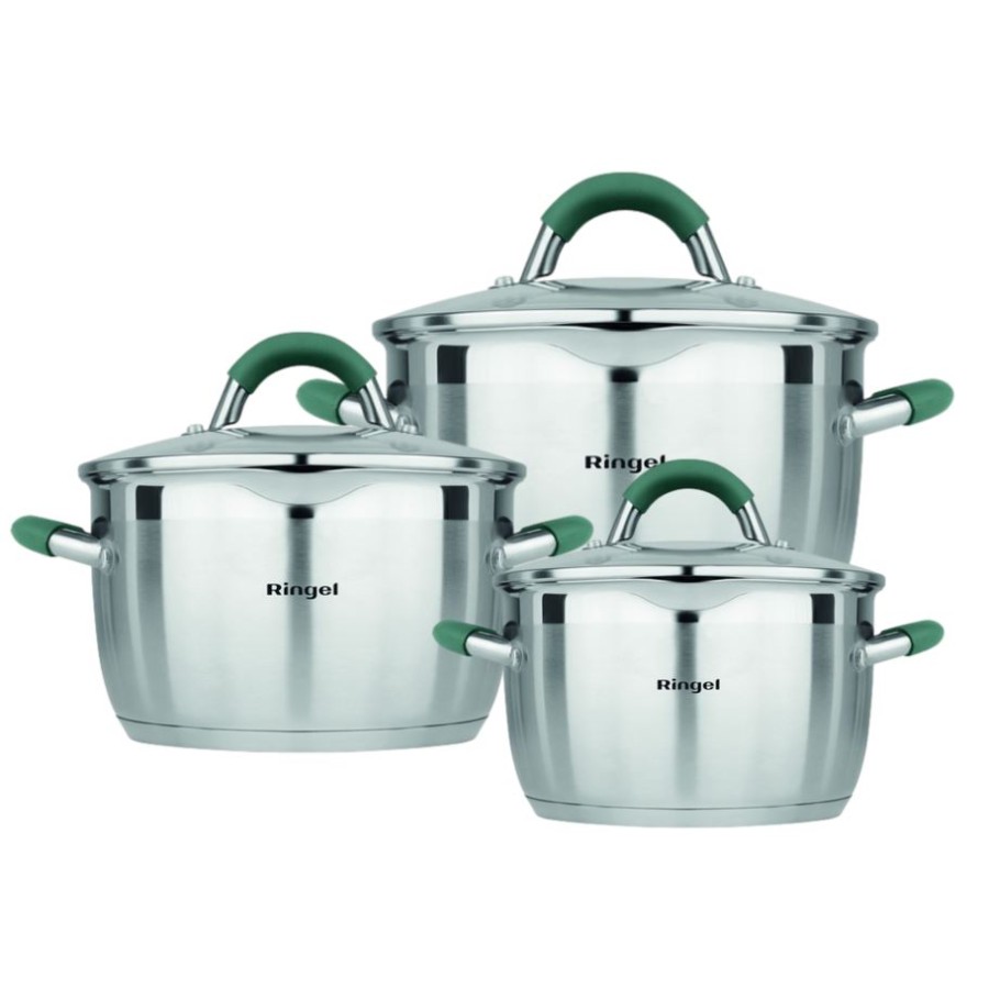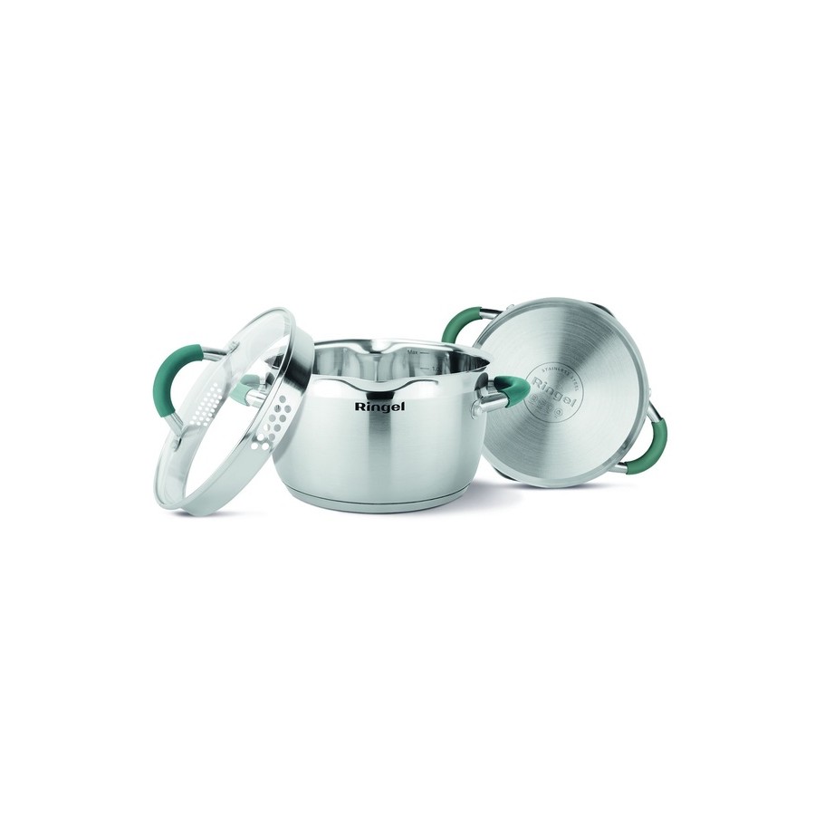 набору посуду Ringel виготовлена з високоякісної нержавіючої сталі, завдяки чому виріб отримує гарантований захист від корозії і деформації, а також не боїться нагріву до високих температур. Разом із цим матеріал, з якого виготовлено набір посуду Ringel, є повністю безпечним для здоров'я. Товщина стінок cерії EXPERT 0,5 мм, що забезпечує його міцність і довговічність.