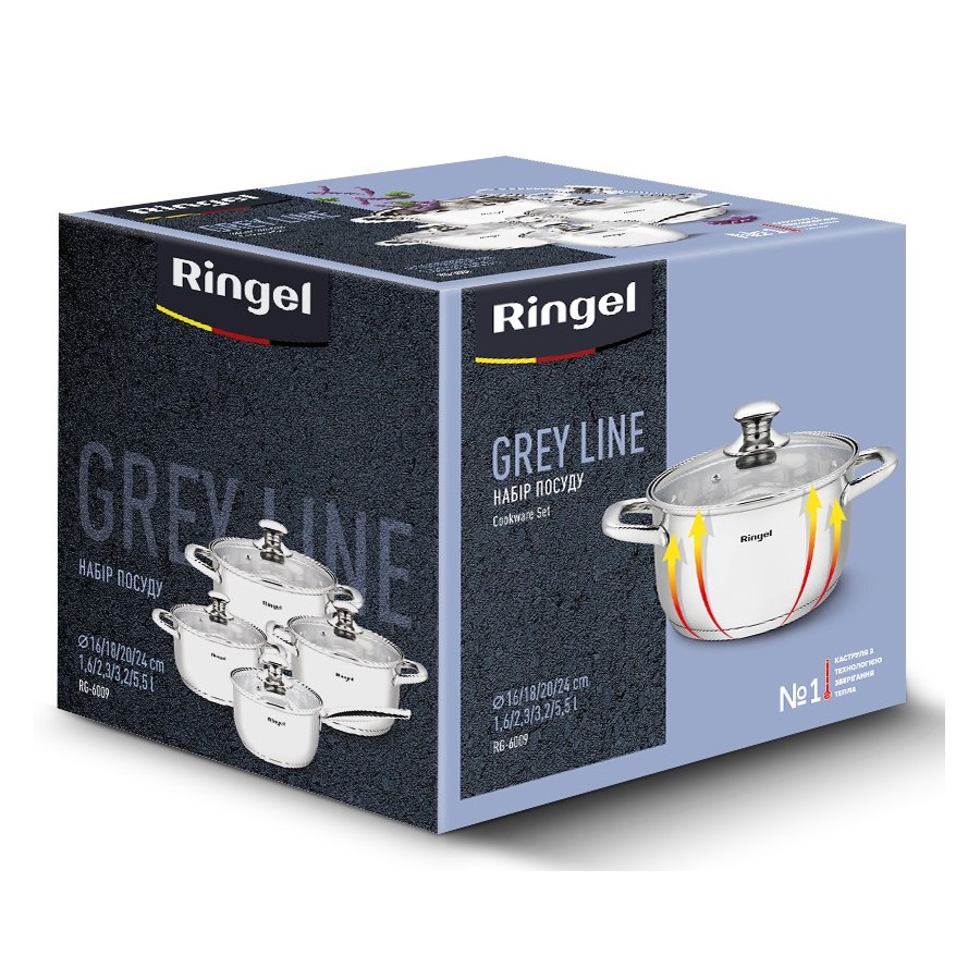 Асортимент продукції бренду RINGEL повністю задовольняє потреби в посуді та приборах найвимогливішої господині. До того ж, зовнішній вигляд усього посуду ТМ RINGEL витриманий в універсальній концепції стриманого та лаконічного дизайну, дозволяє самостійно комбінувати поєднання посуду на кожній окремій кухні.