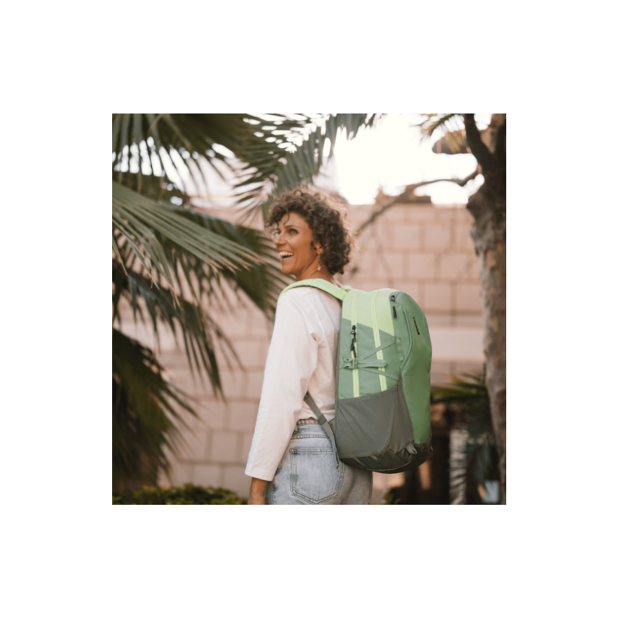 Нагрудний ремінь, м'яка задня панель із повітряним каналом і бічні компресійні ремені балансують навантаження, роблячи його зручнішим для перенесення.