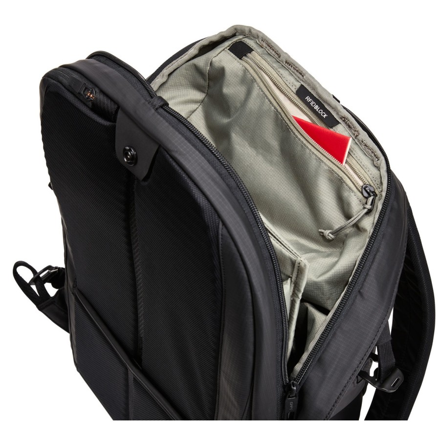 Thule Tact Backpack 21L - місткий рюкзак, що відповідає стандарту bluesign®, виготовлений з перероблених матеріалів і має захисне відділення для ноутбука, кілька кишень-органайзерів і систему захисту від крадіжок для забезпечення безпеки рюкзака протягом дня.