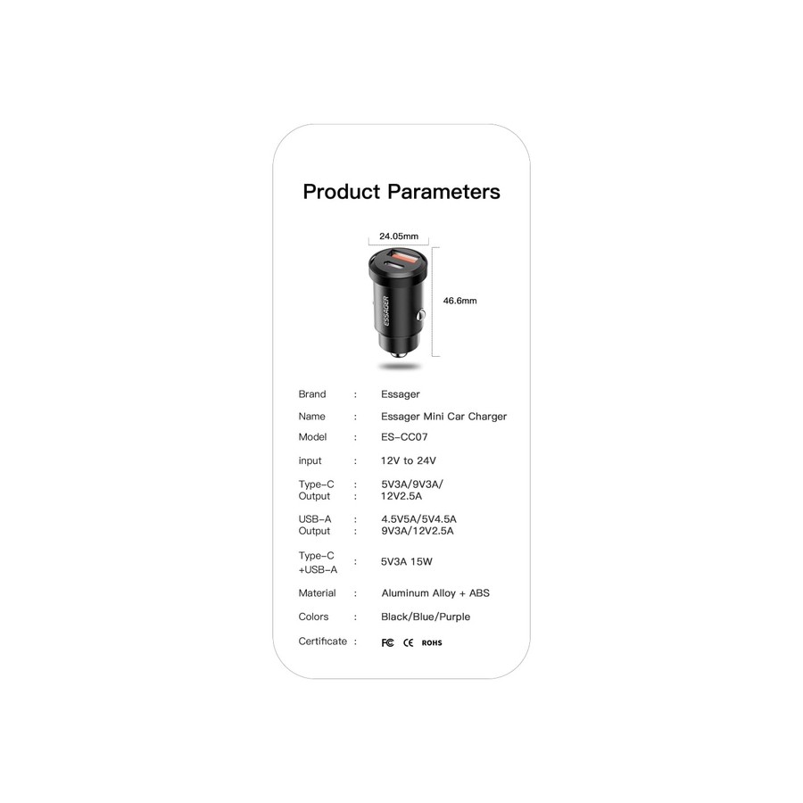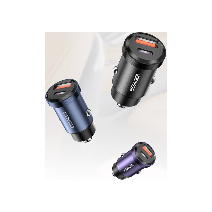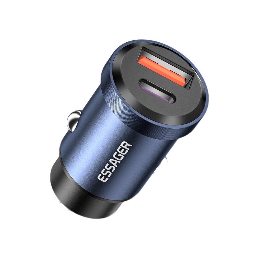 Автомобільний Зарядний пристрій ESSAGER Gyroscope Mini Charger USB-A + Type-C 30W (ECCAC-TL03) Blue