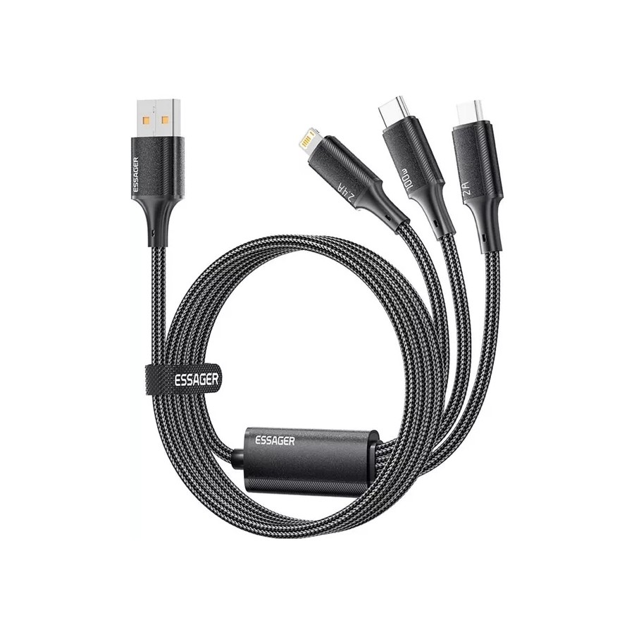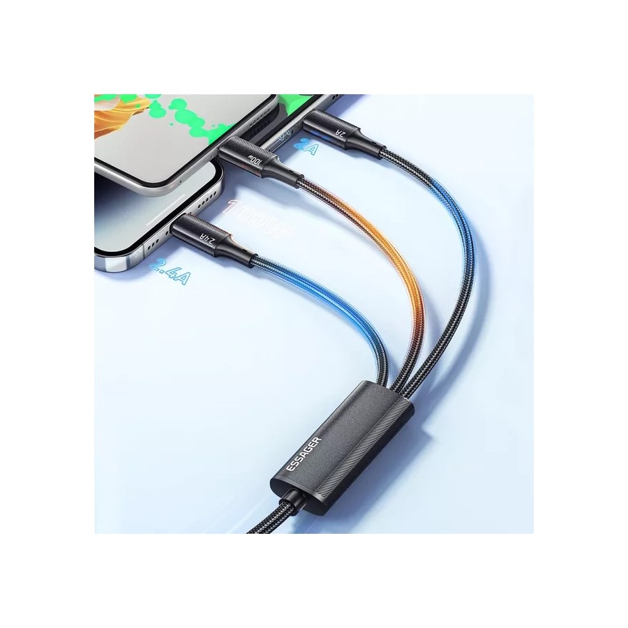 ESSAGER Simple 3 in 1 Micro+Type-c+Lightning 100W USB Cable 1.2M