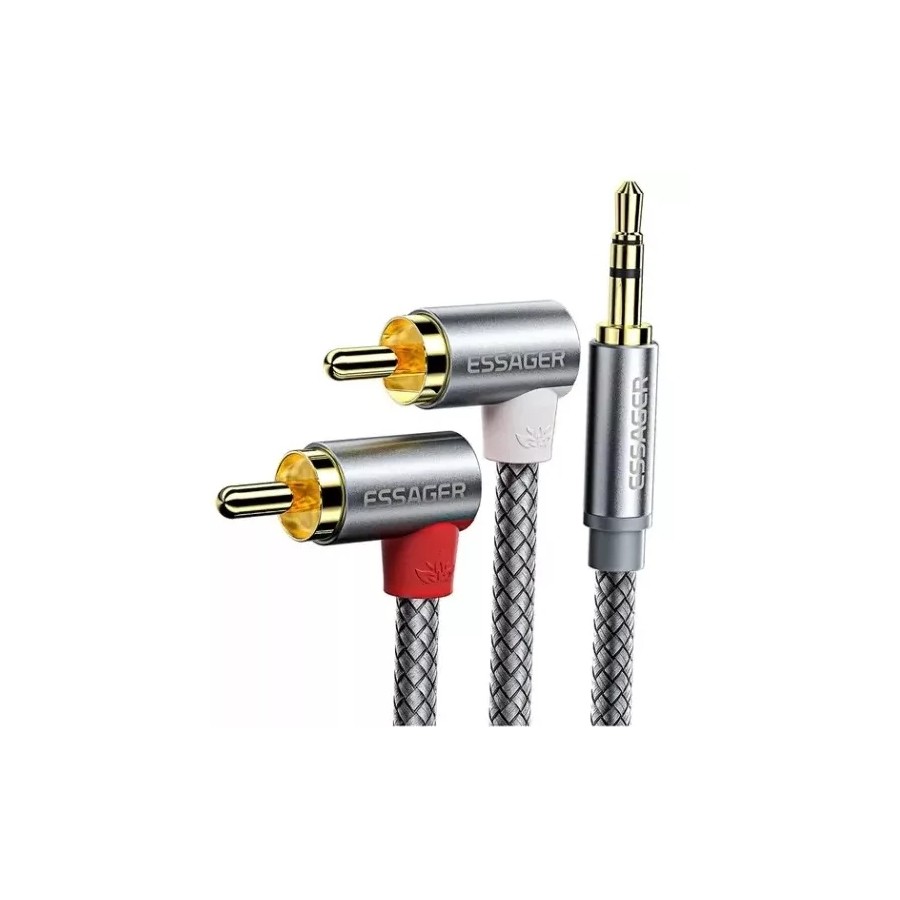 Кабель ESSAGER Monster Elbow RCA Audio Cable Jack 3.5 to 2 RCA Cable 3.5mm 3.5mm Jack to 2RCA Male Splitter Aux Cable 1M (EYPWT-MY0G-P)
