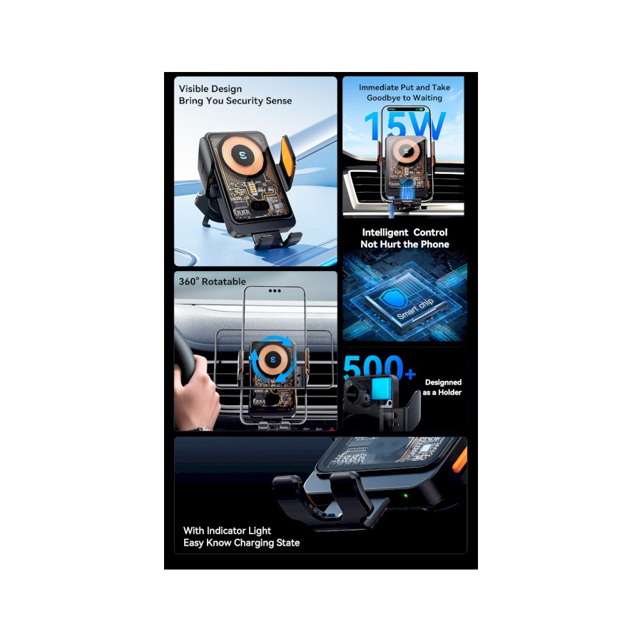 Автомобільний тримач ESSAGER Junyi 15W Wireless Phone Holder for Car (Air Outlet Type) (EZJWX-JY01-Z)