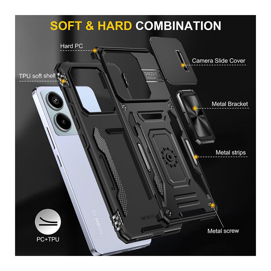 Ударостійкий чохол Camshield Army Ring для Xiaomi Redmi Note 13 4G Чорний / Black