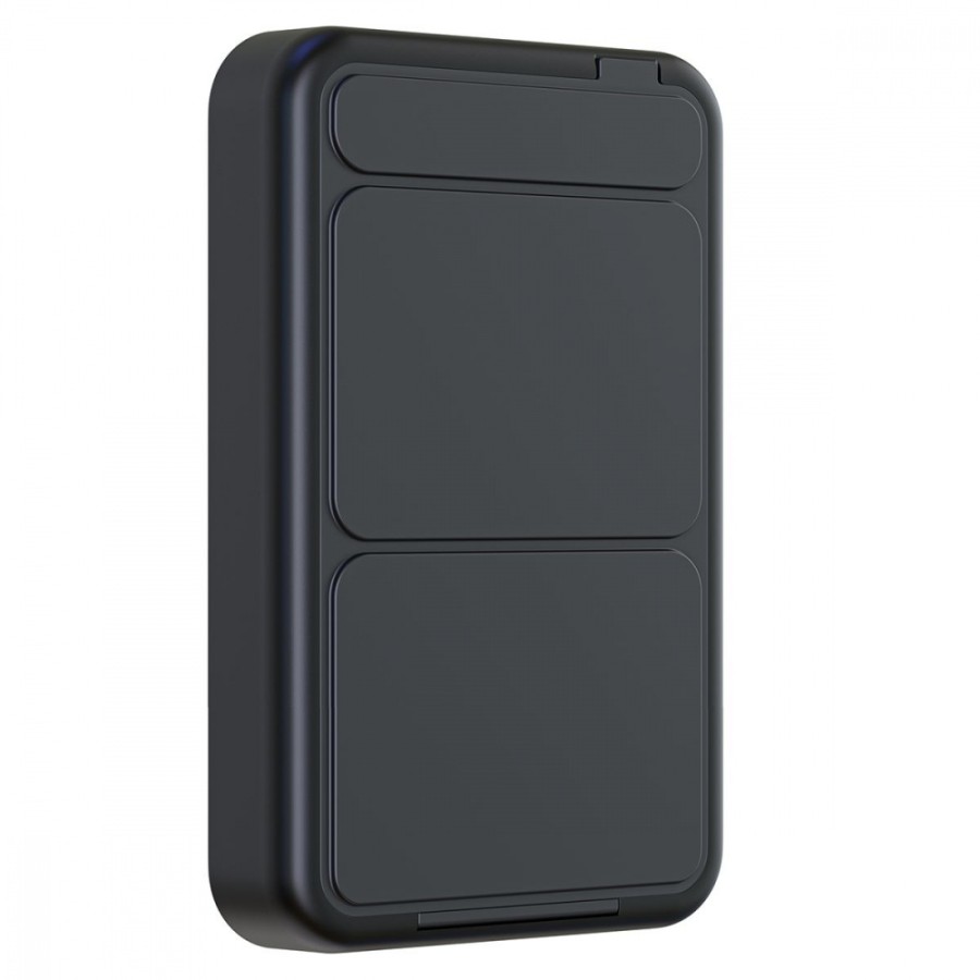 Зовнішній акумулятор Proove Hyperion має порти Type-C і MagSafe, надаючи можливість одночасної зарядки двох пристроїв. Ця функція робить його ідеальним супутником для тих, хто постійно використовує кілька гаджетів упродовж дня. Додаткова підставка дає змогу не тільки зручно розмістити ваш смартфон або планшет під час заряджання, а й робить Hyperion чудовим рішенням для перегляду відео або роботи на ходу. Маленькі розміри акумулятора гарантують його легкість у транспортуванні, роблячи його ідеальним вибором для подорожей і щоденного використання.
