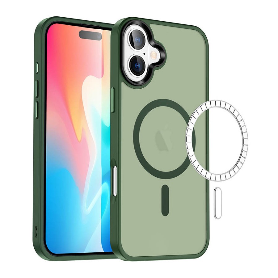 TPU+PC чохол Metal Buttons with MagSafe Colorful для Apple iPhone 16 (6.1") Зелений