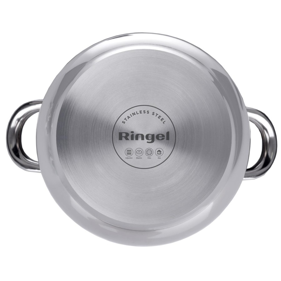 Полірована поверхня каструлі Ringel не лише надає посуду прекрасний зовнішній вигляд, але також забезпечує додатковий захист від корозії. Добре відполірований посуд з міцної нержавіючої сталі простий у догляді та здатен прослужити тривалий час, не втрачаючи свою зовнішню привабливість.