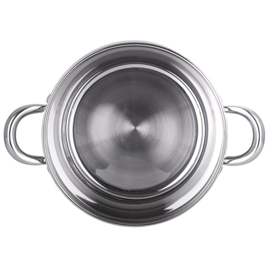 Дно каструлі Ringel виготовлено тришаровим із застосуванням товстої алюмінієвої пластини, герметично запаяної всередині капсуля з нержавіючої сталі. Алюміній має підвищену порівняно зі сталлю теплопровідність, тому така каструля швидше нагрівається і краще розподіляє тепло по всій поверхні, що робить приготування їжі зручнішим і економічнішим.