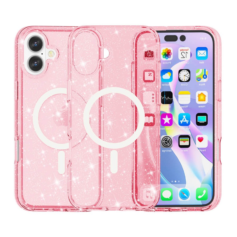 Чохол TPU Galaxy Sparkle (MagFit) для Apple iPhone 16 (6.1") Pink+Glitter