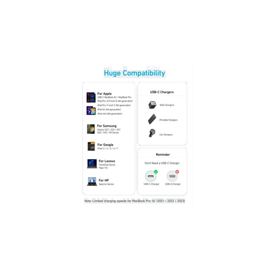 Від MacBook до iPad, телефонів Samsung тощо, цей кабель Anker USB-C пропонує рішення для заряджання, яке підходить для різноманітних пристроїв.