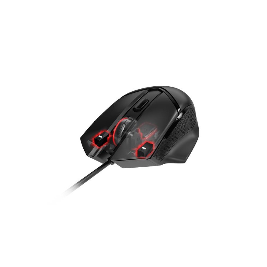 + Швидкий і точний оптичний датчик + Режим світлового ефекту RGB Mystic + Міцна якість збірки з перемикачами OMRON + Регульована система налаштування ваги + Ергономічний дизайн для правшів + DPI до 6400 DPI