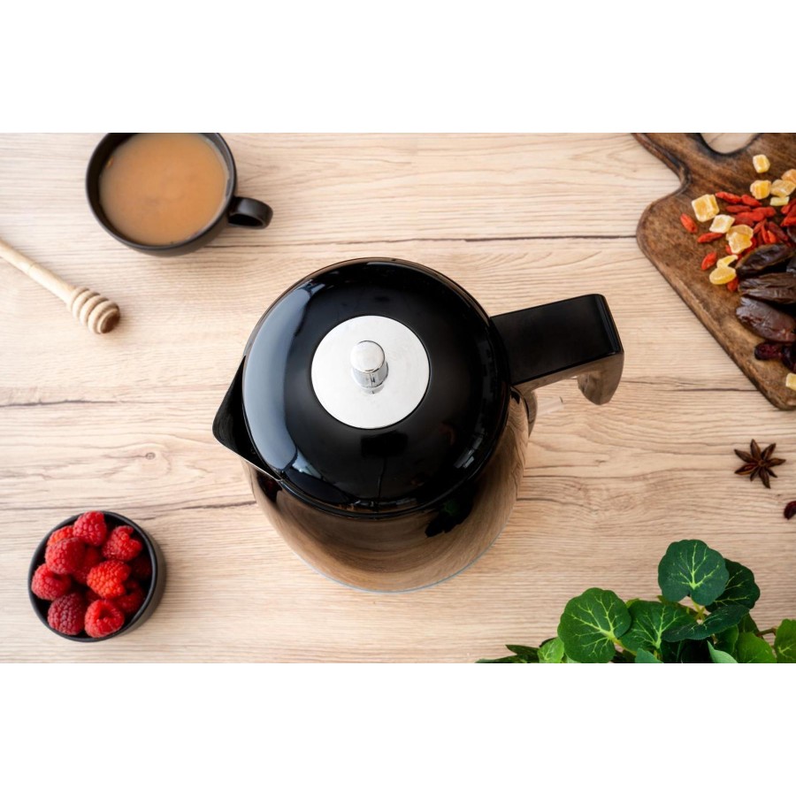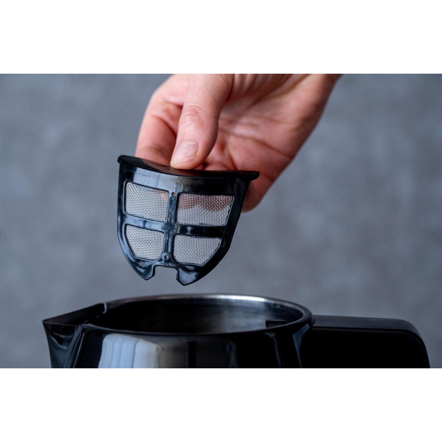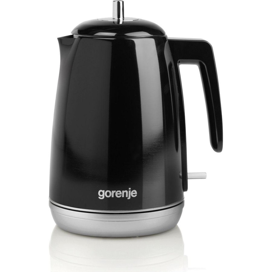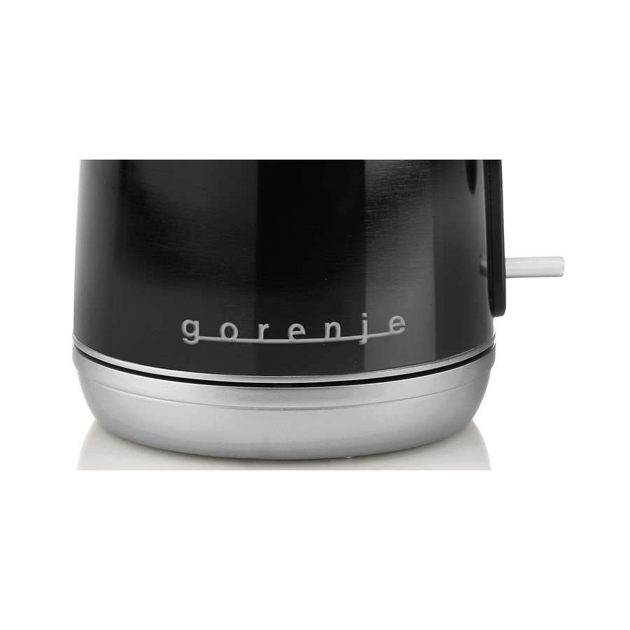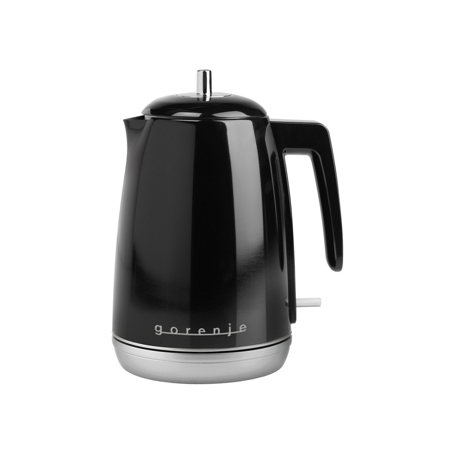 Електричний чайник Gorenje K 15 RLBK представлений у чорному кольорі з корпусом із металу та пластику. Функція автовідключення дезактивує пристрій за недостатнього рівня води або при досягненні температури кипіння. Прогумована протиковзна підстава робить прилад стійкішим і зручнішим в експлуатації. Відділення для змотування кабелю спростить зберігання.