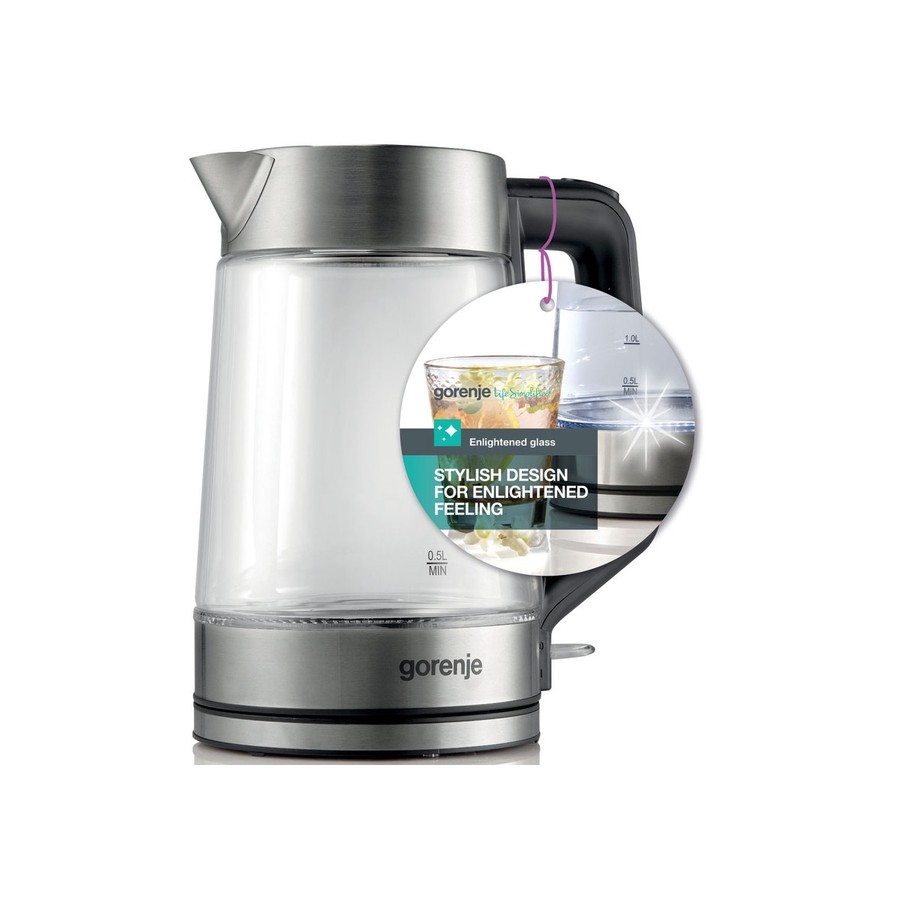 Електрочайник Gorenje 1.7л, 2,200 Вт, strix контроль, скло, чорний (K17GDW)