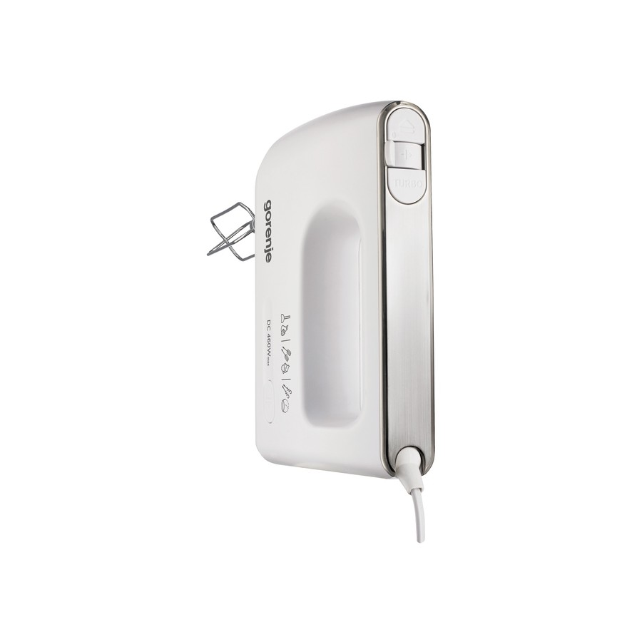 Легко керувати На верхній площині міксера рукоятки Gorenje M 460 CDC розташований прапорцевий перемикач режимів. Він дозволить вибрати одну із п'яти швидкостей. Причому для перемикання не потрібно зупиняти процес збивання. Перемикач зручно керувати однією рукою. Там же знаходиться кнопка турбо-режиму для короткочасного підвищення обертів до максимуму. Вона злегка втоплена в корпус, щоб унеможливити випадкові натискання.