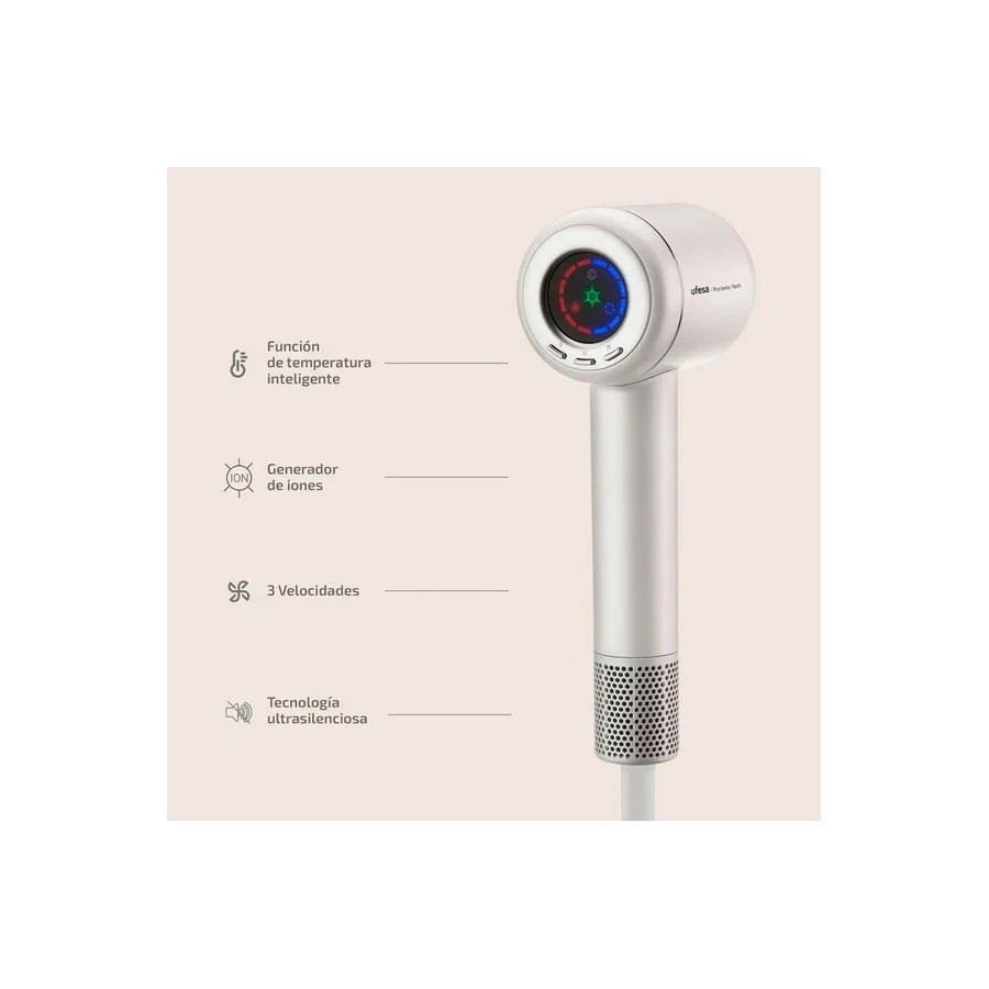 Фен Pro Ionic-Tech оснащений високошвидкісним цифровим двигуном. Подбайте про своє волосся з максимальним захистом завдяки інтелектуальному датчику температури, який постійно вимірює температуру повітряного потоку, автоматично чергуючи гаряче і холодне повітря, щоб запобігти пошкодженню, яке може бути спричинене надмірним нагріванням волосся.