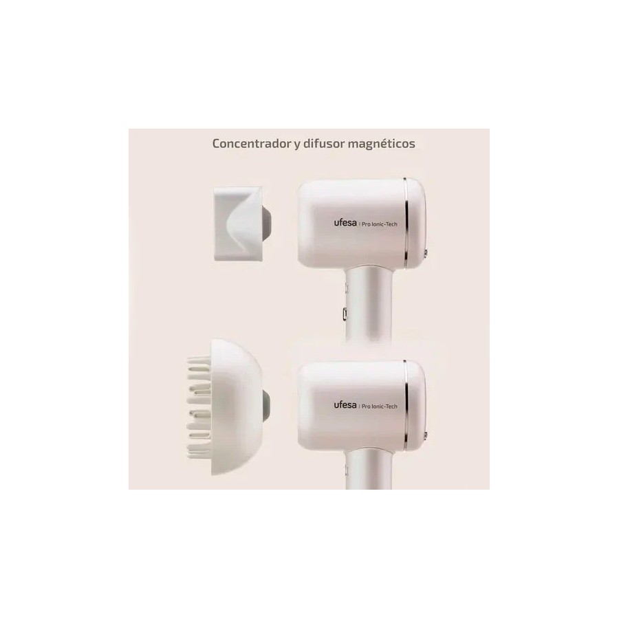 Видатною особливістю є генератор іонів, який вивільняє понад 10 мільйонів одиниць/см³ негативних іонів в секунду. Це не тільки сприяє видаленню вологи з волосся, але й зменшує статичну електрику, роблячи волосся блискучим, гладким і неслухняним. Він має 3 швидкості і 3 температури, адаптуючись до всіх ваших потреб, а також має опцію обдування холодним повітрям, яка допоможе вам зафіксувати зачіску. Цифровий дисплей дозволяє легко побачити обрану температуру та швидкість, що дає вам точний контроль над процесом сушіння.