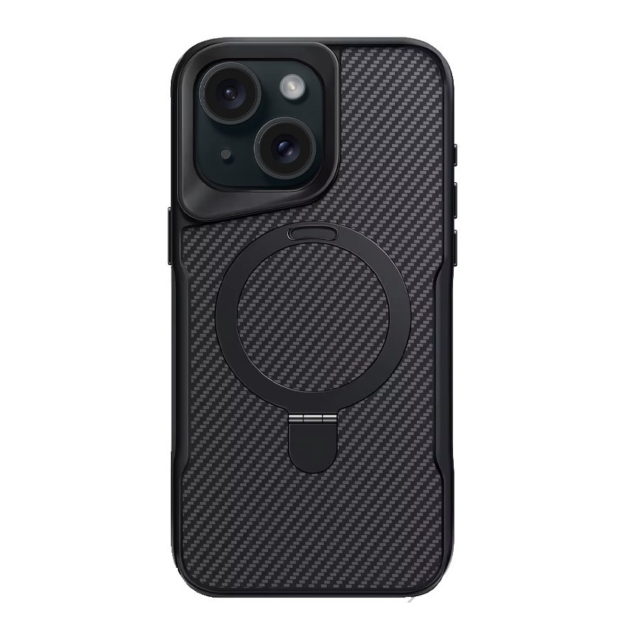 TPU+PC чохол Metal Buttons with MagSafe Carbon Ring для Apple iPhone 14 / 13 (6.1") Чорний
