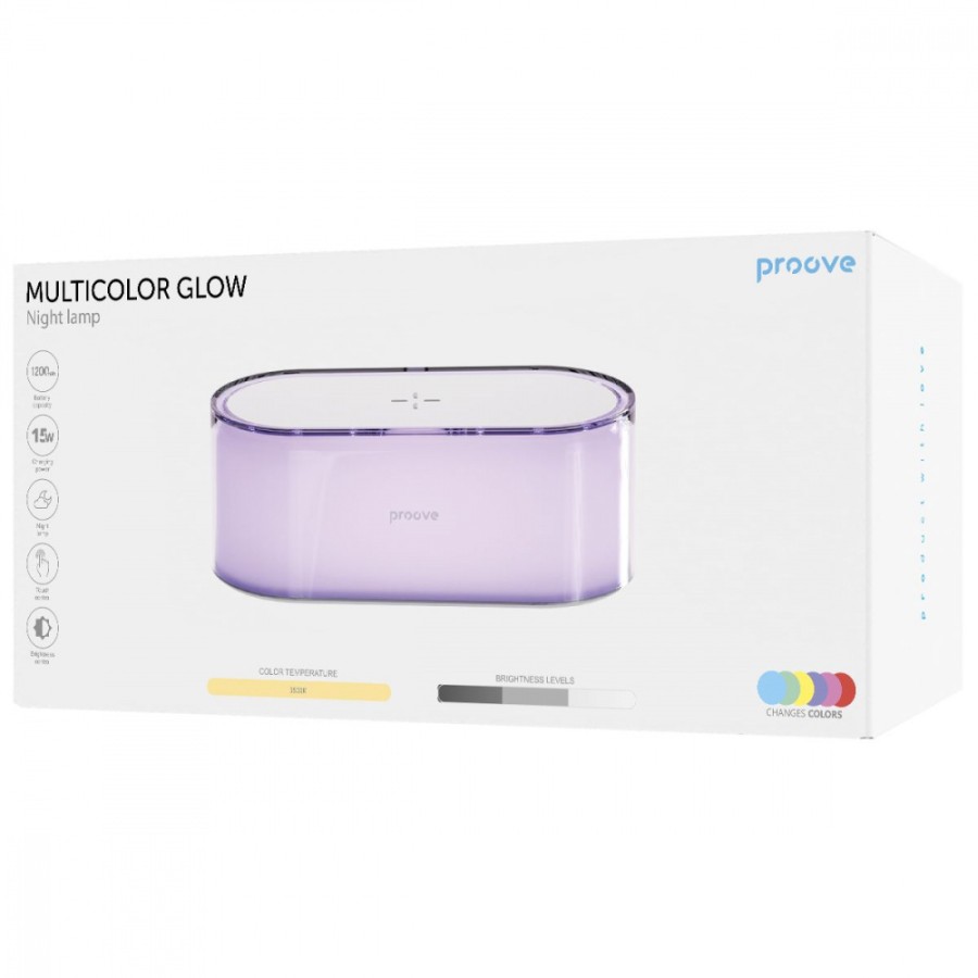 Оснащена інноваційними функціями, лампа дозволяє налаштовувати освітлення відповідно до ваших потреб. Завдяки широкій палітрі кольорів та компактному розміру, Proove Multicolor Glow є ідеальним варіантом для спалень та віталень, забезпечуючи приємне і комфортне світло.